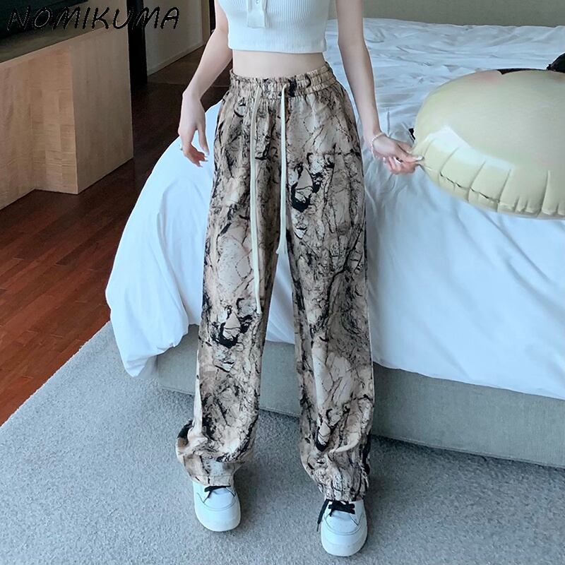 のみくまタイダイウーマンパンツレースアップウエストロングパンツCausal2022サマーワイドレッグパンツパンタロン 夏物 ワイドパンツ kor51719767602