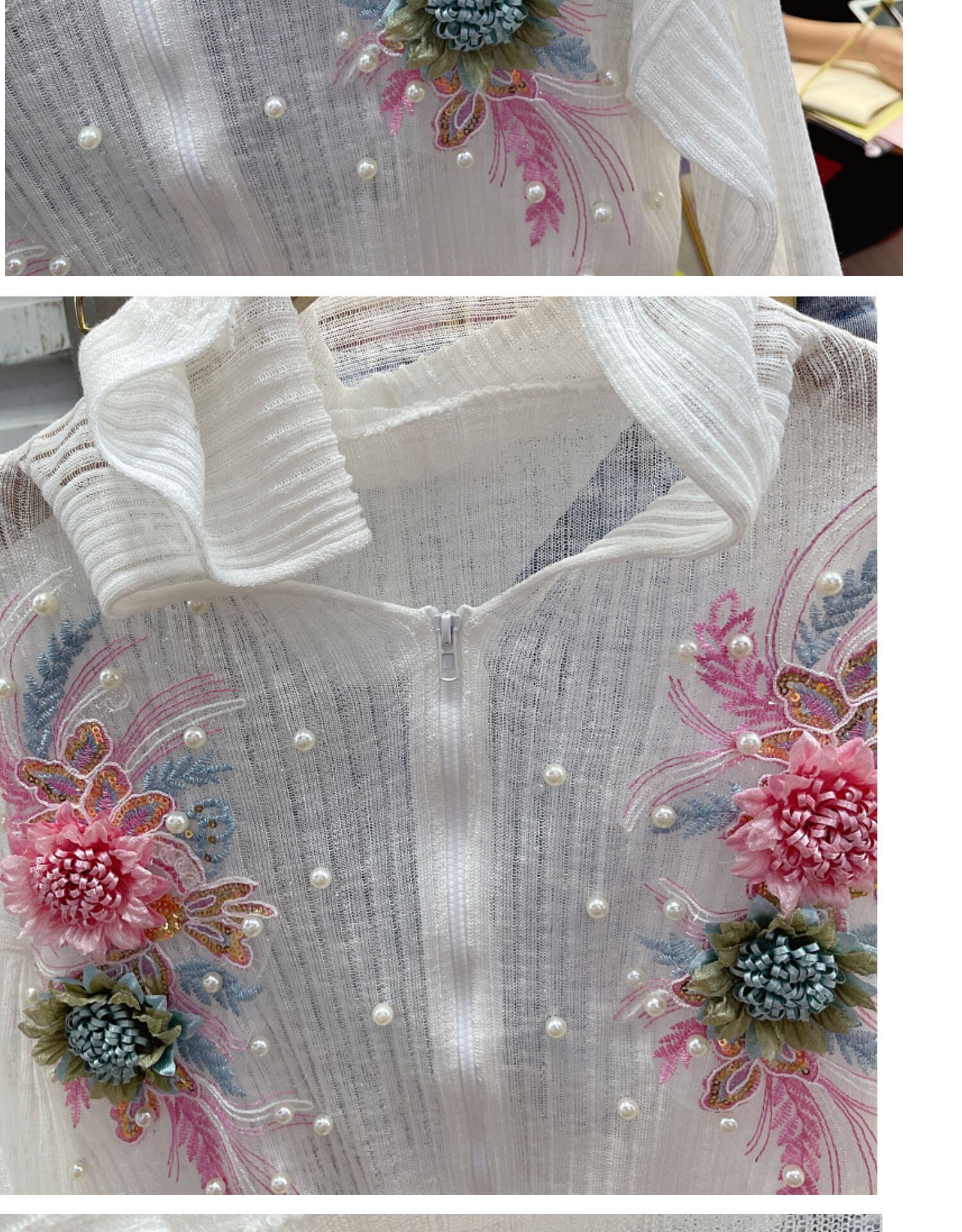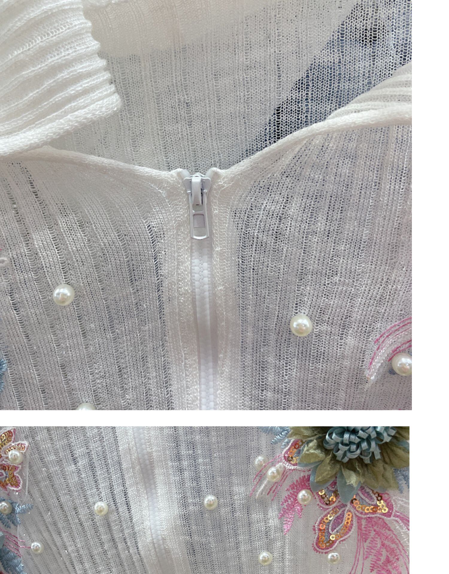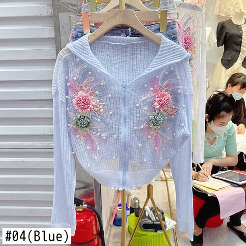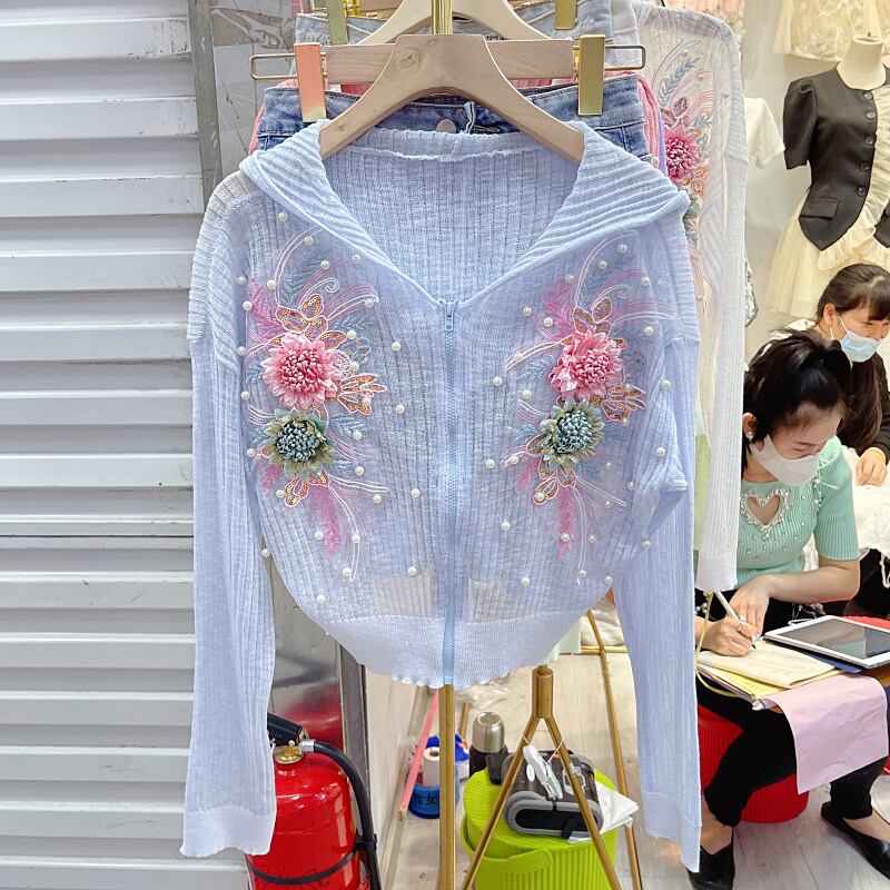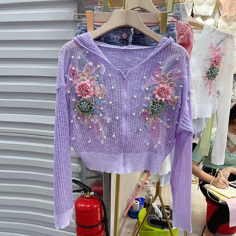 ノミクマ2022ニットサンプロテクションカーディガンシックビーズ3Dフラワーセーターコートジッパーショートニットウェア フラワーデザイン kor21459793795