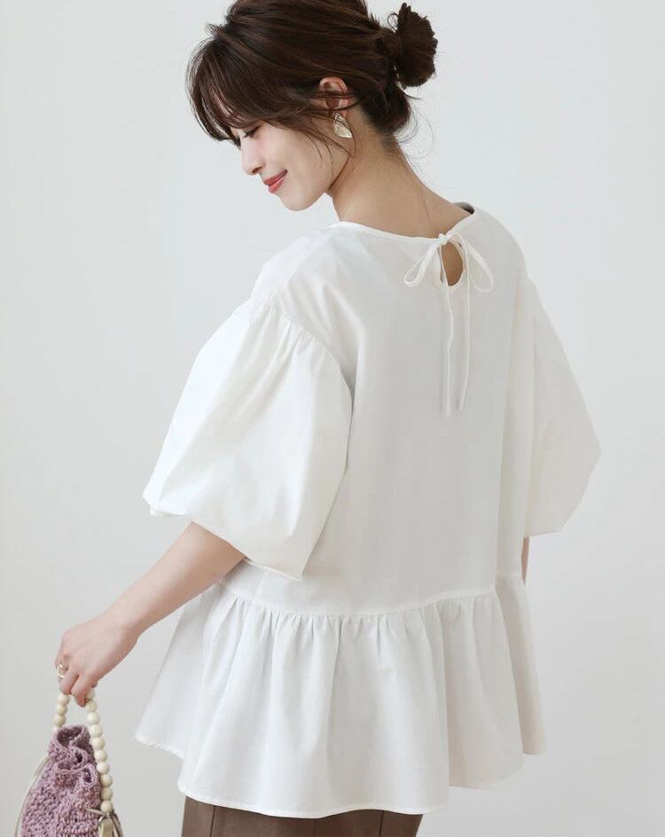 ノミクマ2022サマーOネックブラウストップスシックパフスリーブウーマンドールシャツCausalRufflePullover De Moda 夏物 kor35695120119