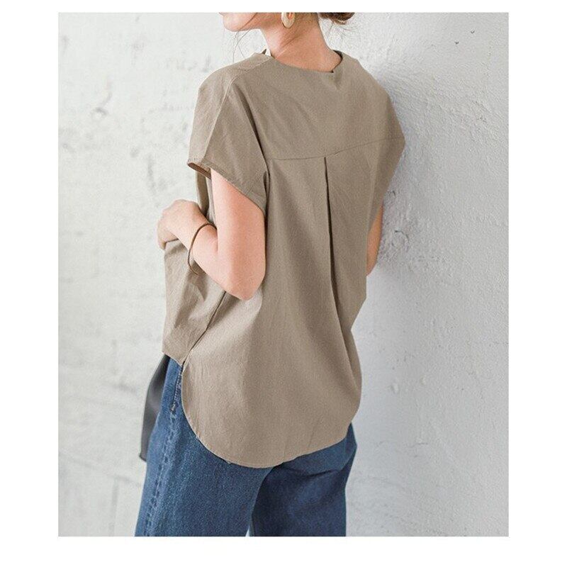 レディース半袖ソリッドブラウストップスCausalO-neckShirts Irregular De Moda ショート ハーフスリーブ シャツ Oネック ソリッドカラー kor3718988080