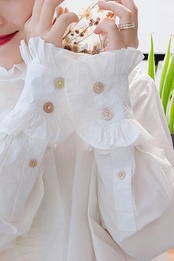Momikuma 2020AutumnWomenブラウスフリルスタンドネック花びらスリーブシャツCausalWhitees 6C450 ホワイト オータム 秋物 kor43089893212