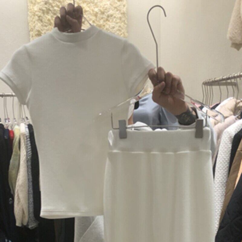 のみくま因果女性スカートセット半袖スリムTシャツ+ウエストミッドカーフスカート2021サマー2ピーススーツ6J017 ショート ハーフスリーブ 夏物 kor3655560424
