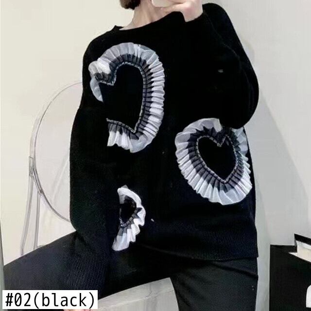 のみくまプルメッシュフリルパッチワークラブハートニットセーター因果長袖女性プルオーバーニット6X599 ロング kor59662127940