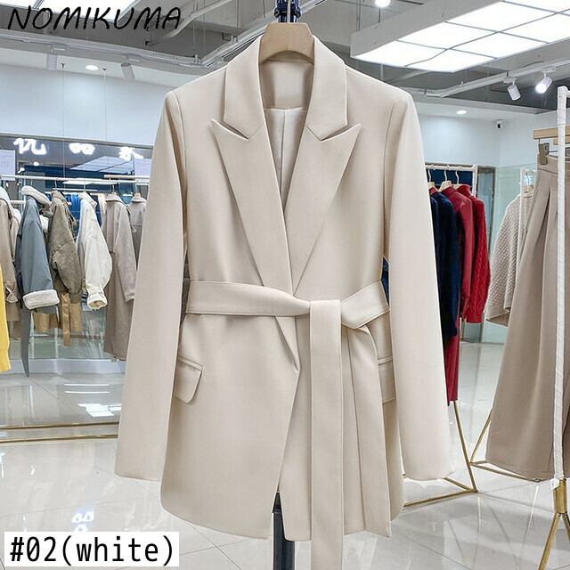 ノミクマレディースブレザー2021秋のノッチカラーカジュアルスーツジャケットベルトスリムウエストブレザーコート6L278 オータム 秋物 ハーネス kor70847327841