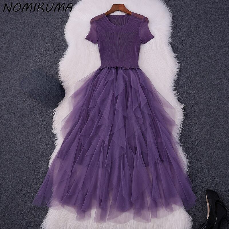 ノミクマウーマンドレス2022サマーウーマンOネック半袖ワンピーススリムイレギュラーガーゼパッチワークVestidosDe ショート ハーフスリーブ 夏物 kor3877845239