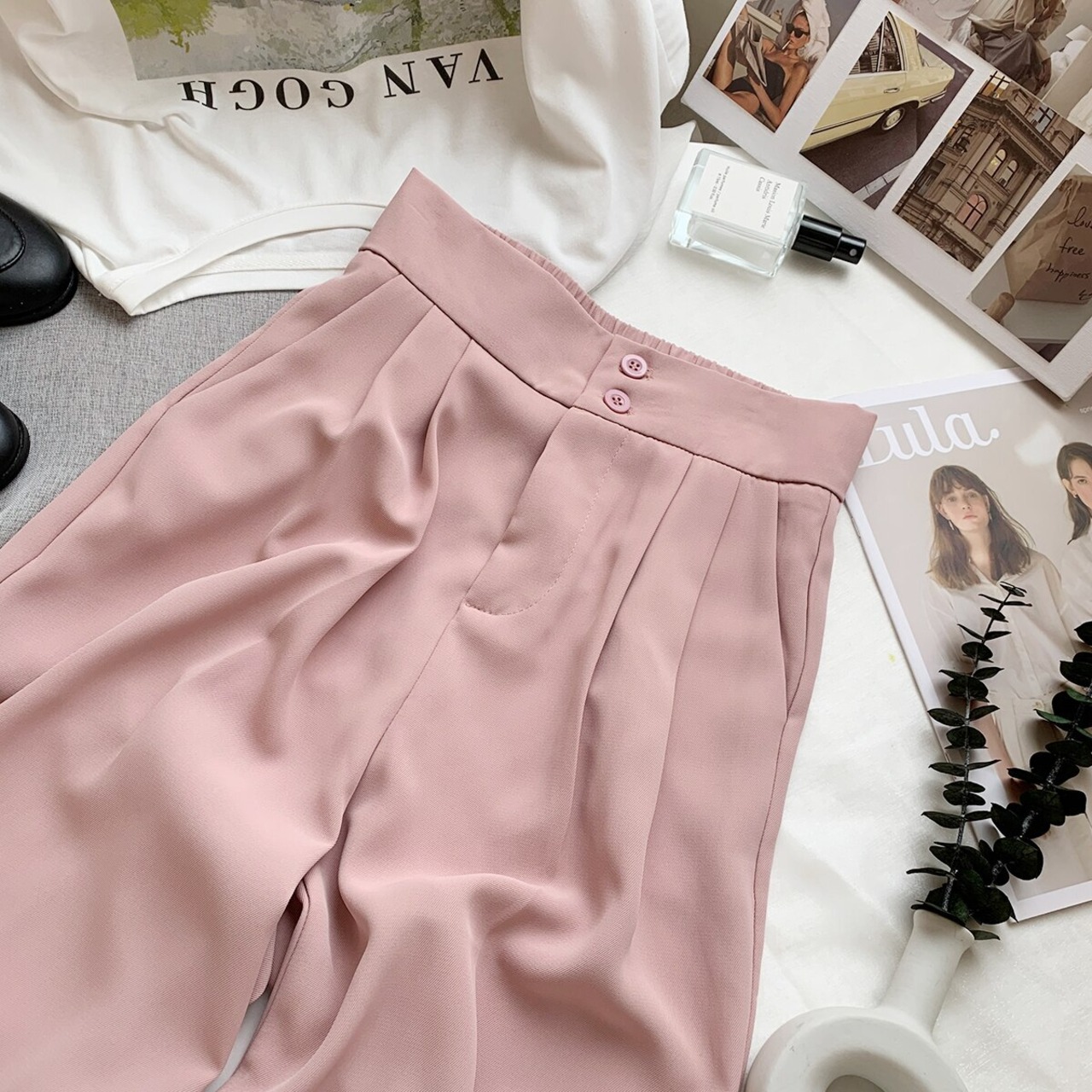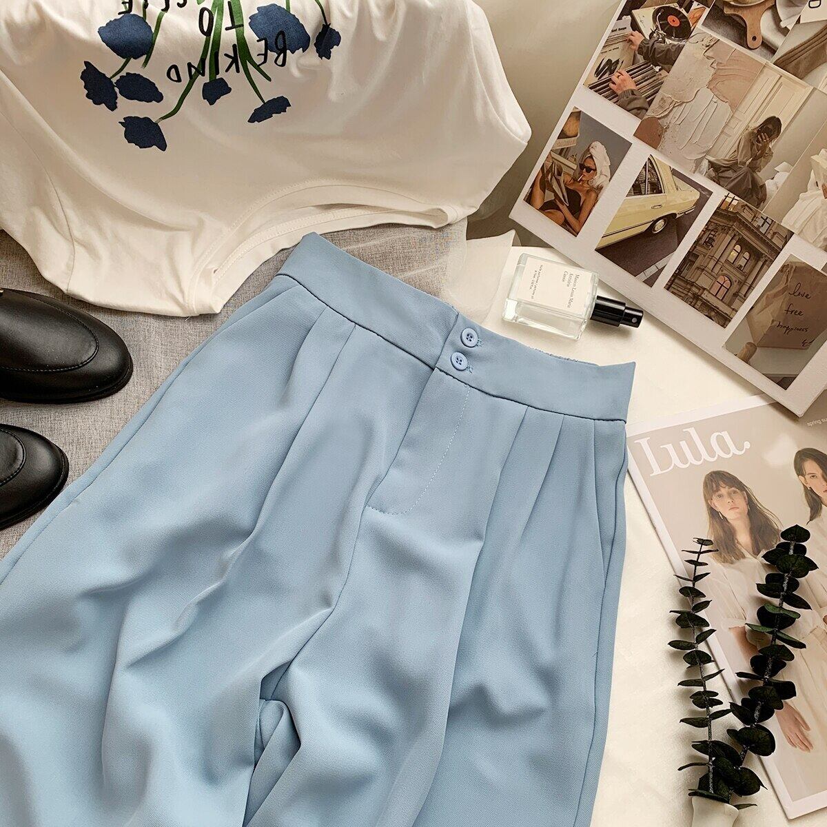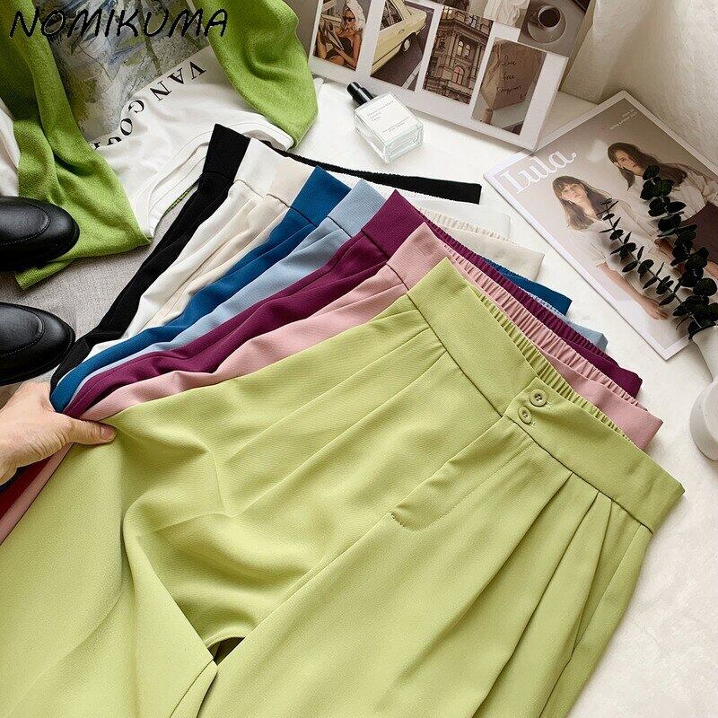 ノミクマウエストウーマンパンツ2022サマーロングパンツCausalSolidWide Leg Pants Pantalones De 夏物 ワイドレッグ ワイドパンツ ソリッドカラー kor26034838011