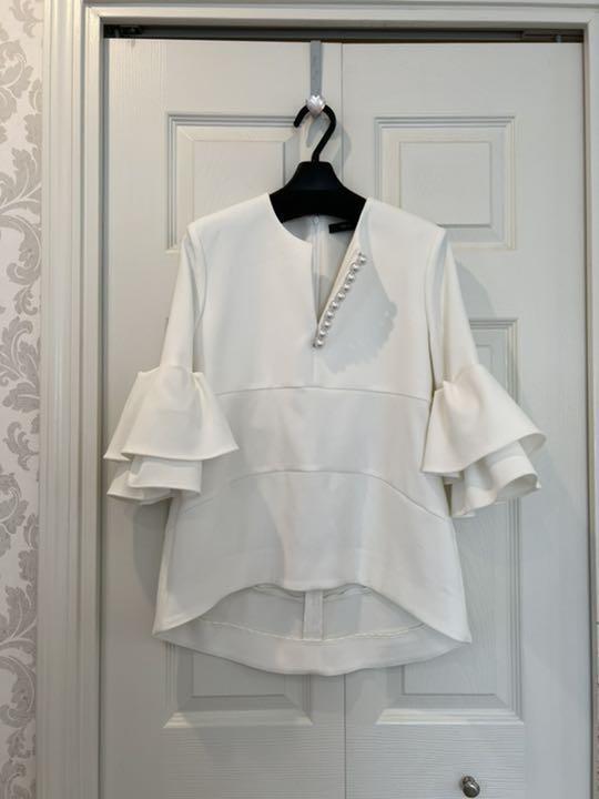 ノミクマ2022サマースタイルウィメンズブラウスシックビーズVネックフレアスリーブシャツカジュアルソリッドプルオーバートップス 夏物 ソリッドカラー kor2751559428