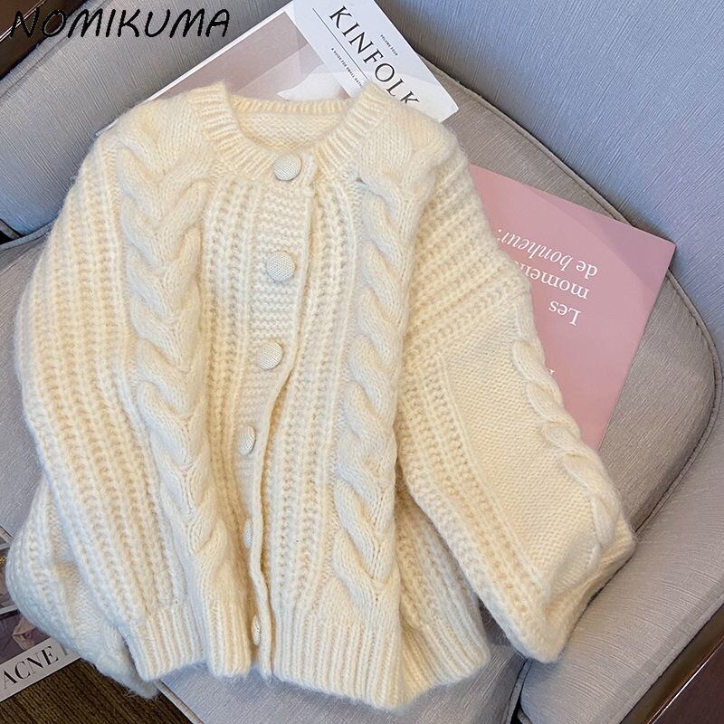 のみくまニットカーディガンレディース秋冬ツイストセーターコート2021長袖Oネックシングルブレストニット6N819 ロング オータム 秋物 ウィンター 冬物 kor88858231393