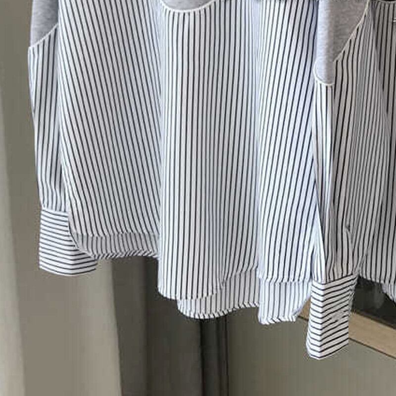 ノミクマストライプヒットカラーパッチワークプルオーバースウェットシャツカジュアル長袖Oネックパーカー2021秋女性ジャンパー6X318 ロング オータム 秋物 kor4777147987