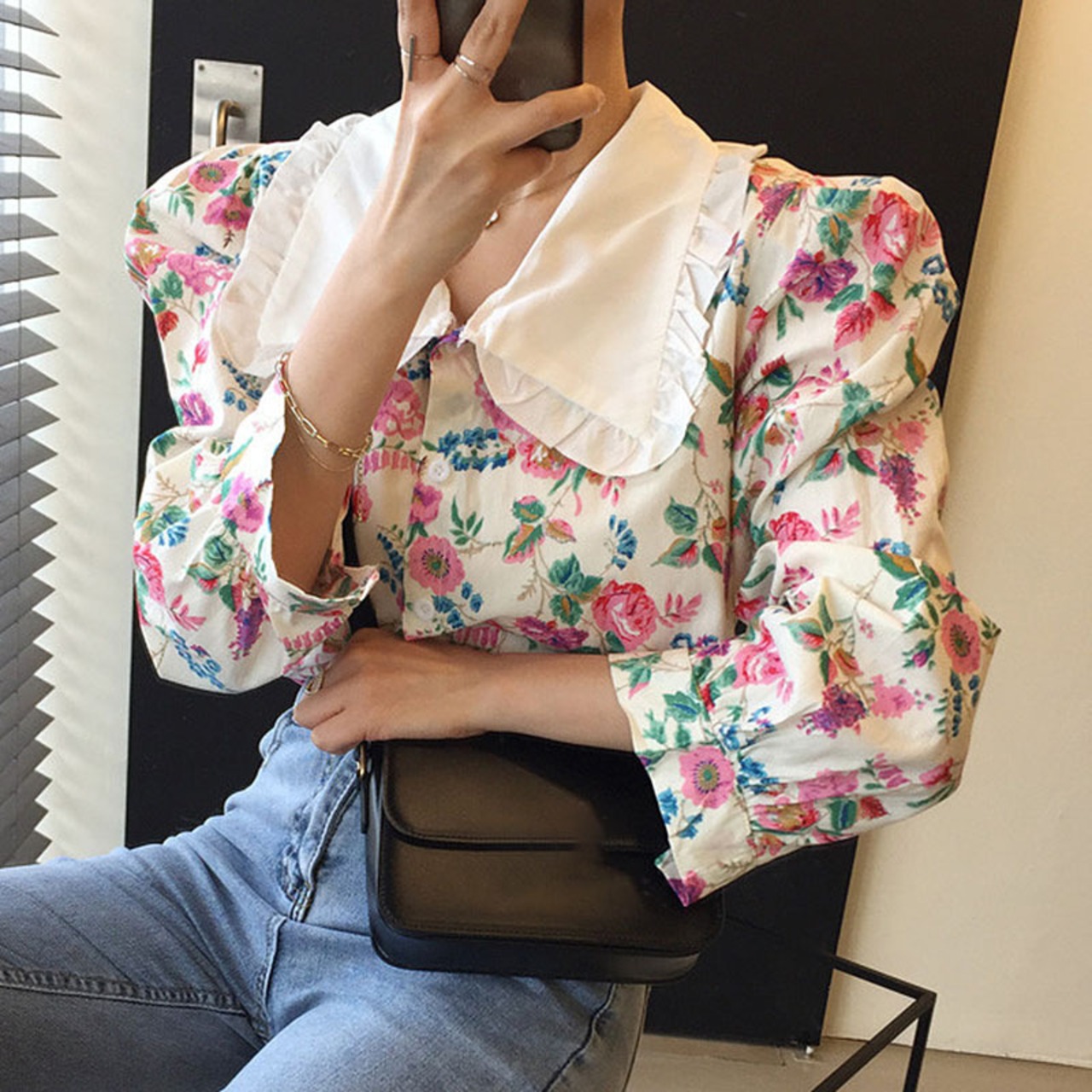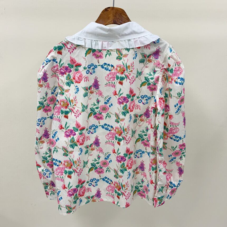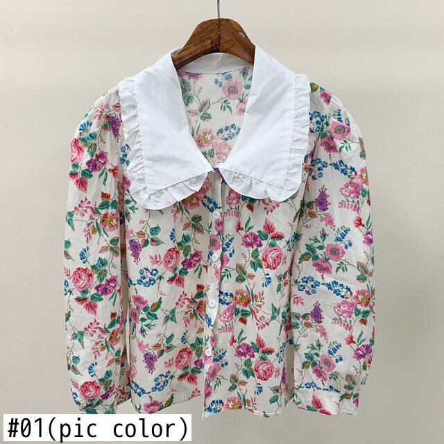 ノミクマレディースシャツフローラルプリントブラウストップカジュアルピーターパンカラー長袖デモダ2022春 ロング スプリング 春物 花柄 kor39645745379
