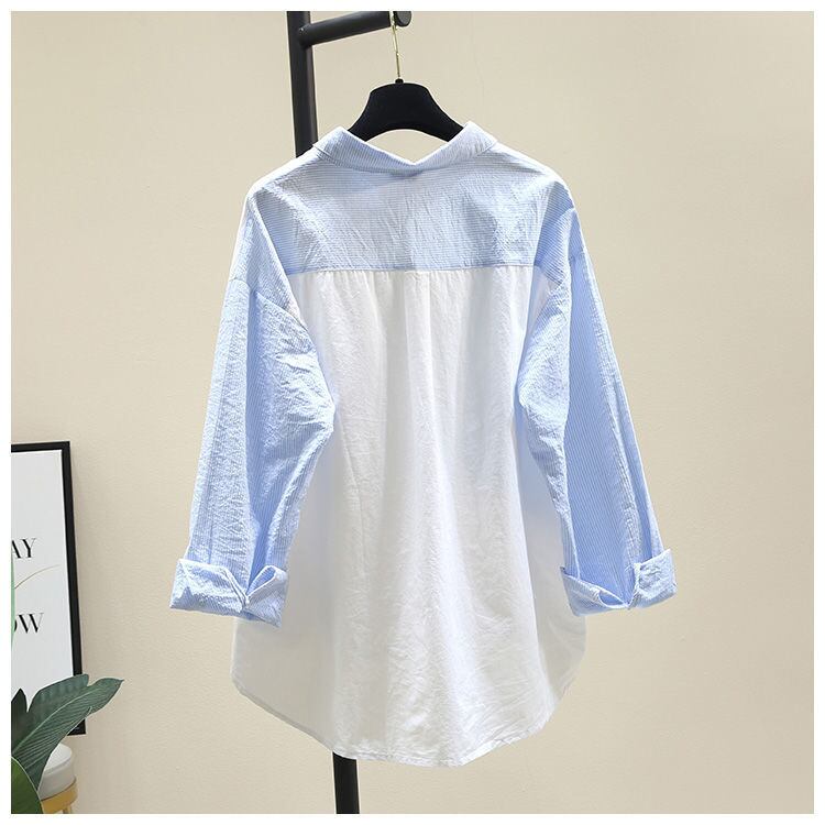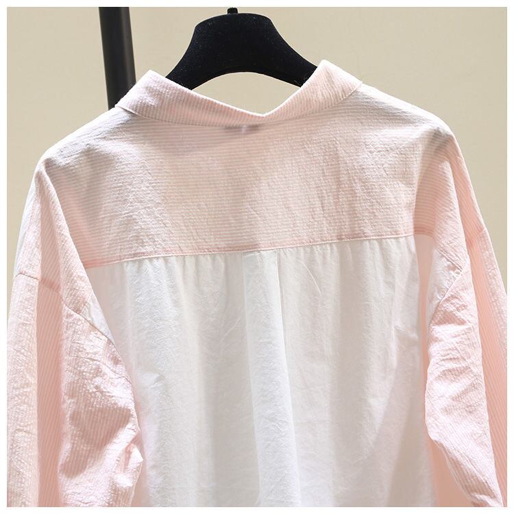 のみくまコントラストカラーウーマンシャツカジュアルロングスリーブポケットトップスブラウス2022SpringSummer De Moda 長袖 スプリング 春物 サマー 夏物 kor47305961683