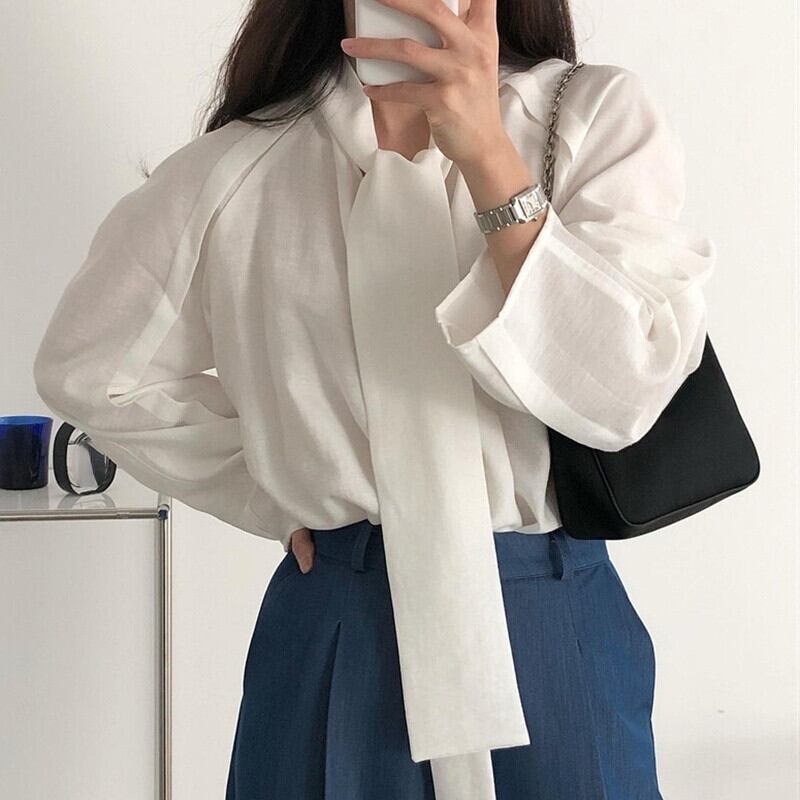 のみくまレースアップブラウスレディースパフ長袖シャツ2021秋カジュアルソリッドデモダ6L750 ロング オータム 秋物 ソリッドカラー kor18041009808