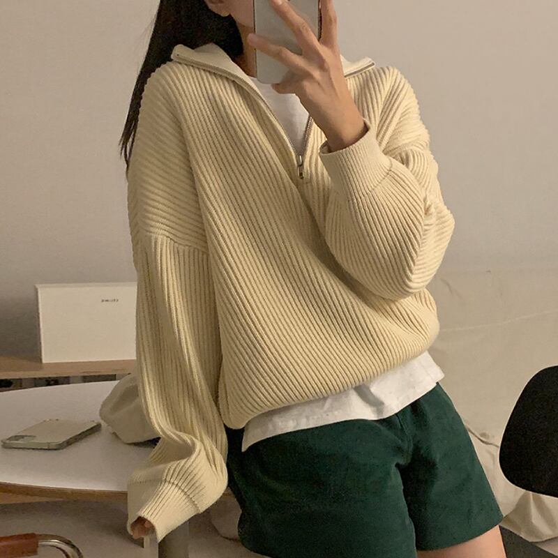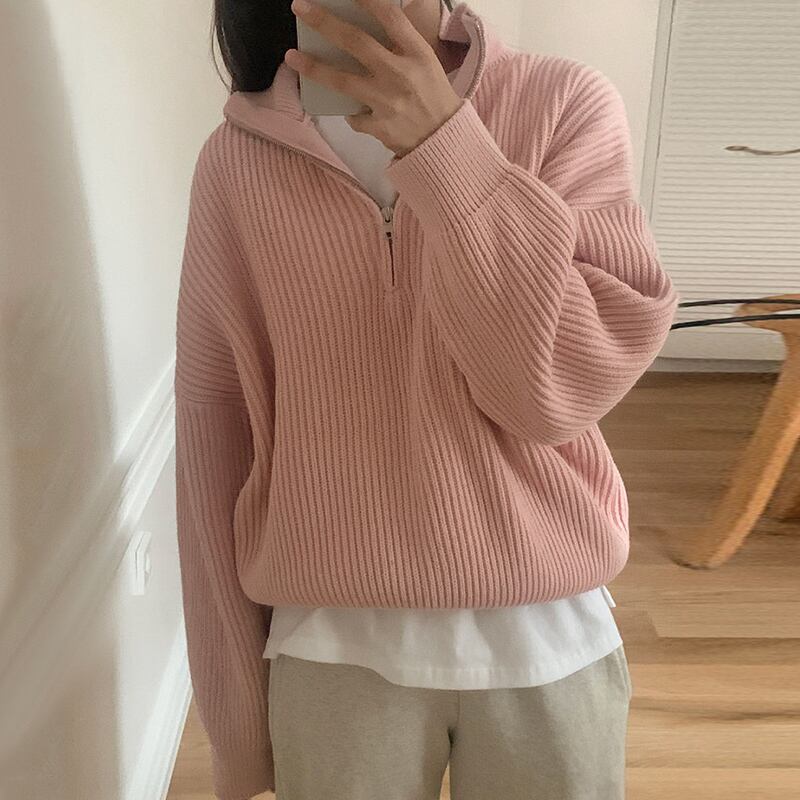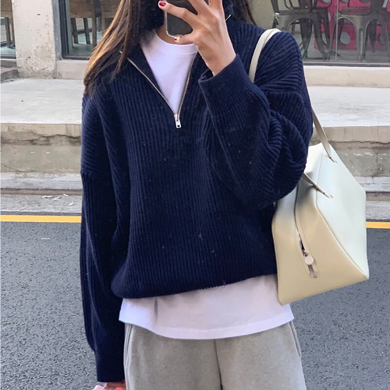 ノミクマ秋冬ジッパータートルネックレディースセーターカジュアルソリッド長袖ニットプルオーバー2021プルジャンパー6X973 ロング オータム 秋物 ウィンター 冬物 ソリッドカラー kor48394407494