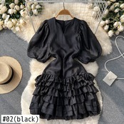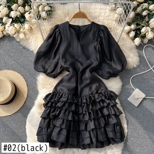 のみくまシックレイヤードフリルAラインワンピース2022年サマーパフスリーブVネックワンピースシックヴェスティドス 夏物 ドレス kor71027432719