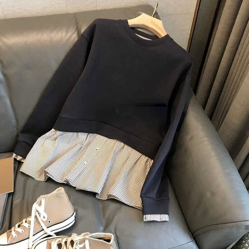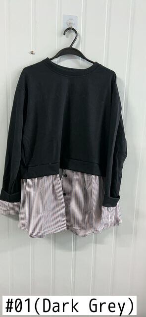 ノミクマ2021パッチワークパーカー女性因果長袖Oネックスウェットシャツフェイクツーピースプルオーバートップス6X044 ロング kor37731189435