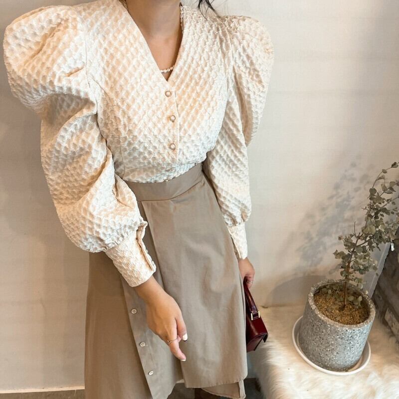 のみくまシックパフスリーブVネックレディーストップスブラウスシャツ2021秋冬フェミニモス6N974 オータム 秋物 ウィンター 冬物 kor26400737387