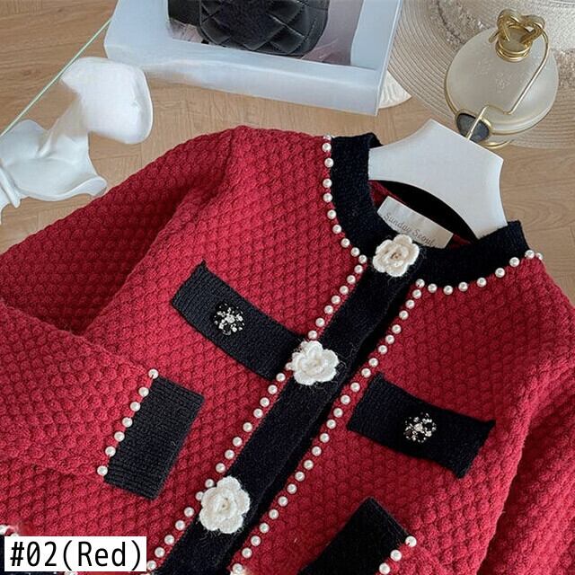 のみくまビーズフラワーボタンニットカーディガン2022春スウィートOネックセーター長袖ニットコート ロング 大人ガーリー キュート カジュアル スプリング 春物 フラワーデザイン kor71580776299