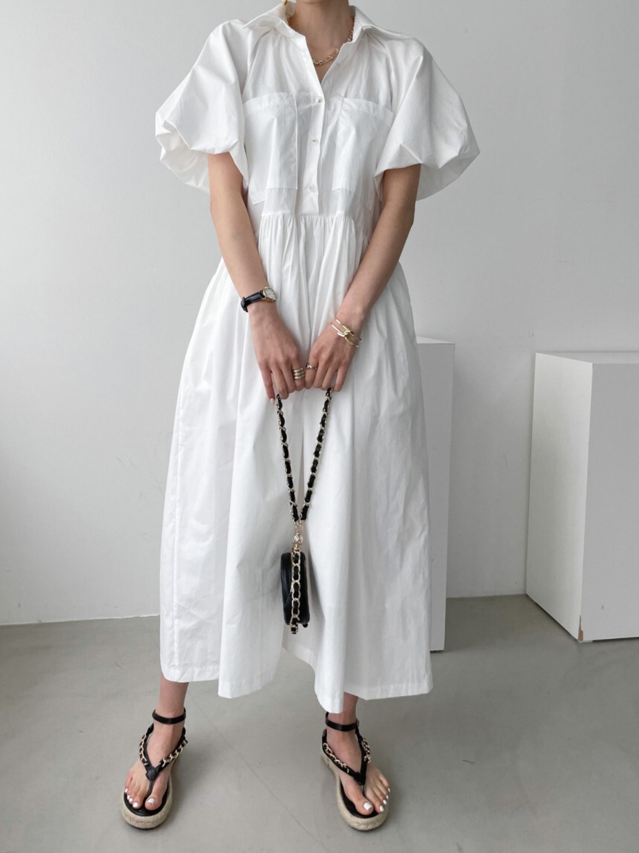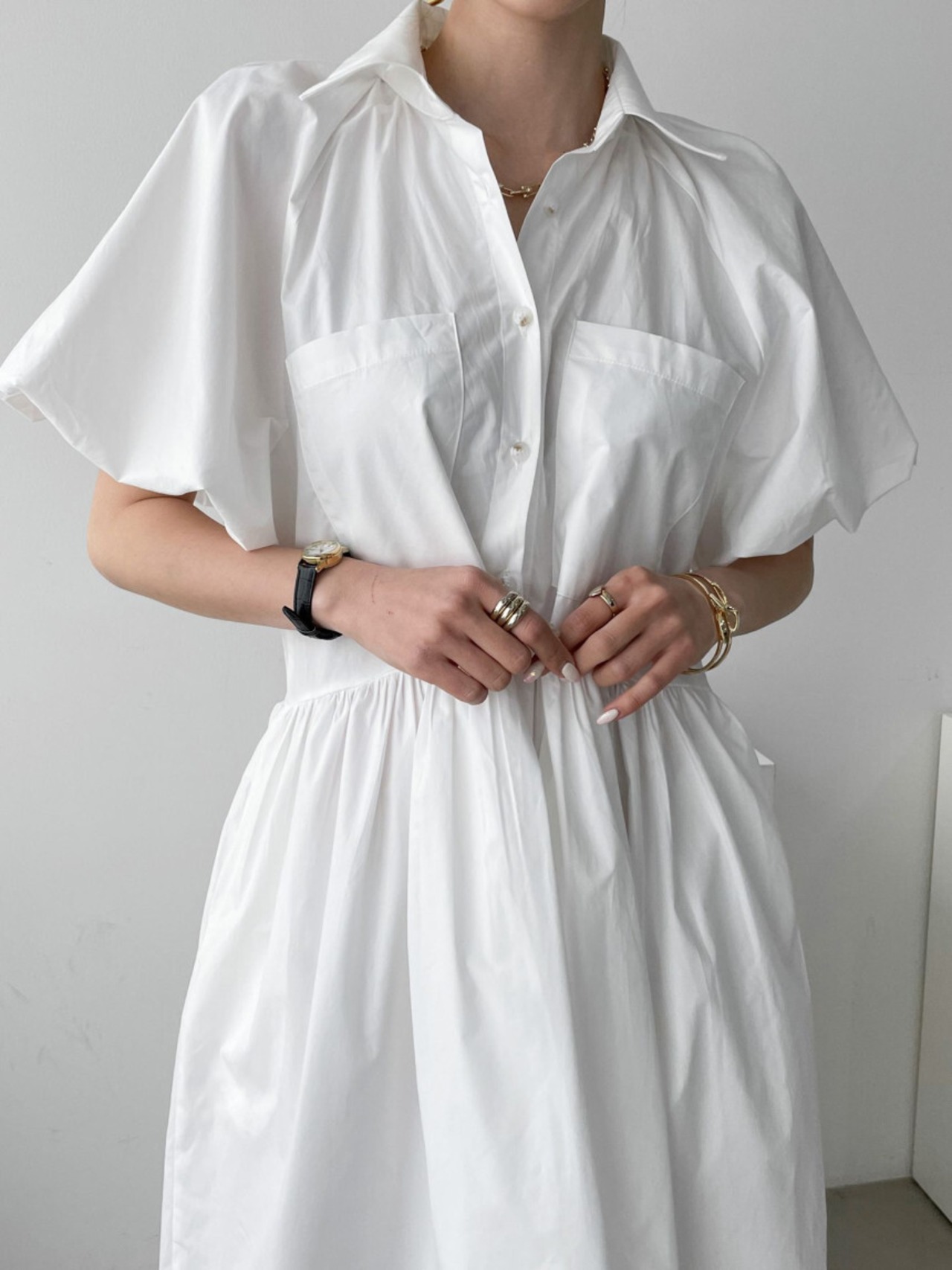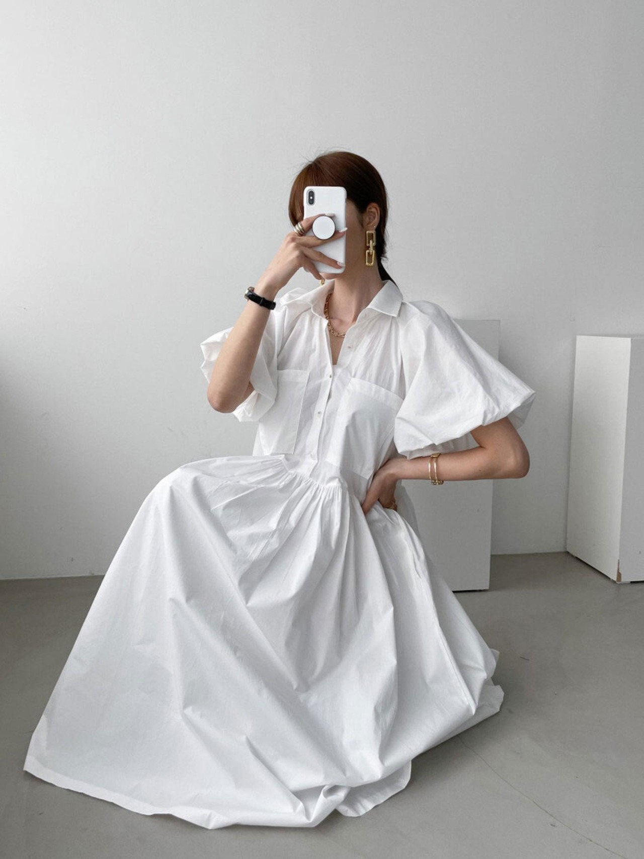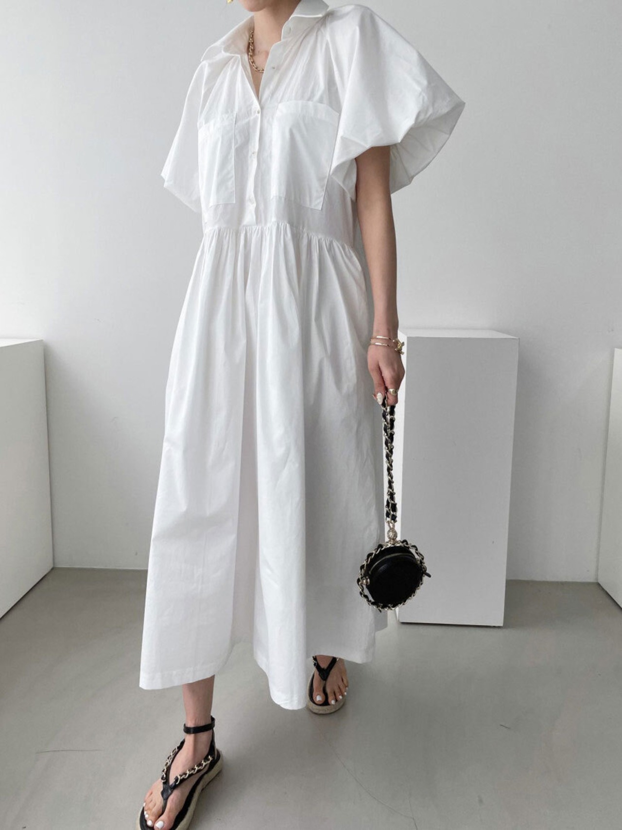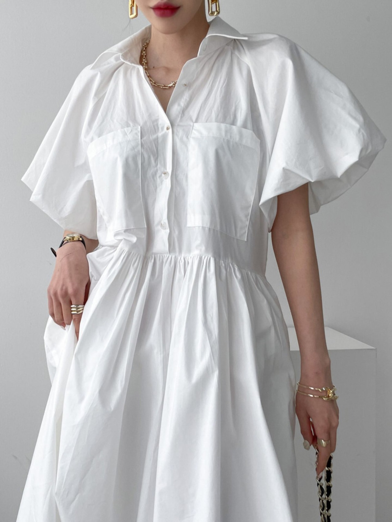 ノミクマターンダウンカラーブラウスドレス女性シックなフライングスリーブドレス因果ポケットウエストブラウスVestidos kor14039864776