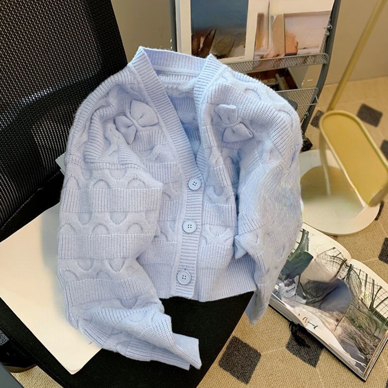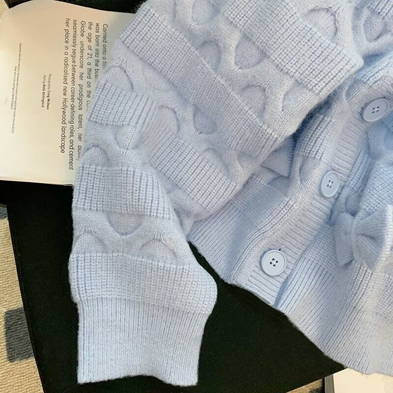 ノミクマ2022春の女性セーターコートシックな甘い蝶結び因果Vネックニット長袖ニットカーディガン ロング リボン 大人ガーリー スウィート キュート カジュアル スプリング 春物 kor55428004943