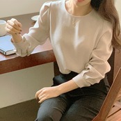 NomikumaCausalPuff長袖プルオーバーブラウスAutumnO-neckWomen Shirts 2020 Solid 6D452 ロング シャツ オータム 秋物 Oネック ソリッドカラー kor59188006984