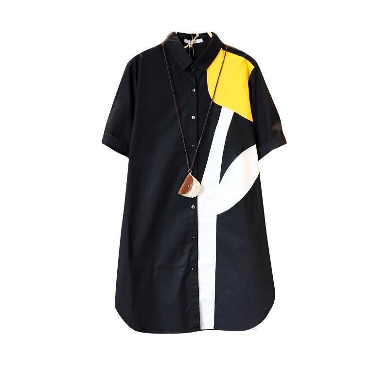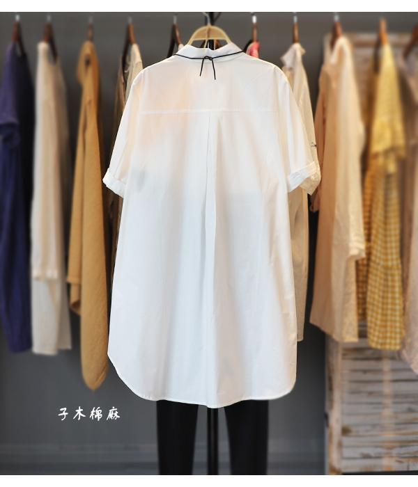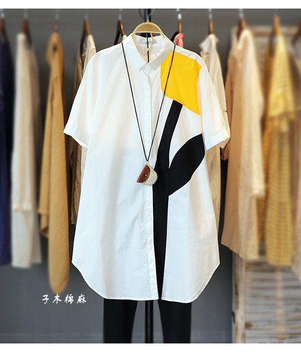 ノミクマミディアムロングレディースブラウスカジュアル半袖ターンダウンカラーシャツ2022サマープリントトップス ショート ハーフスリーブ 夏物 kor72624413222