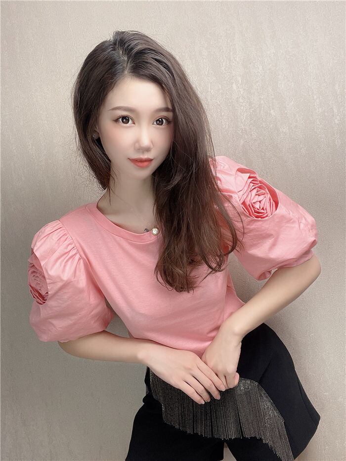 ノミクマシック3Dフラワーパフスリーブウーマンシャツ2022サマースウィートグラフィックトップスCausalO-neckPullovers 大人ガーリー キュート カジュアル 夏物 Oネック フラワーデザイン kor22502653548