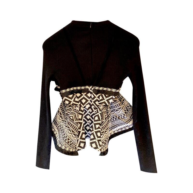 のみくまフェイクツーピースプリントフリルパッチワークニット長袖Oネックスリムウエストレディースセーター6N215 ロング kor35663179709