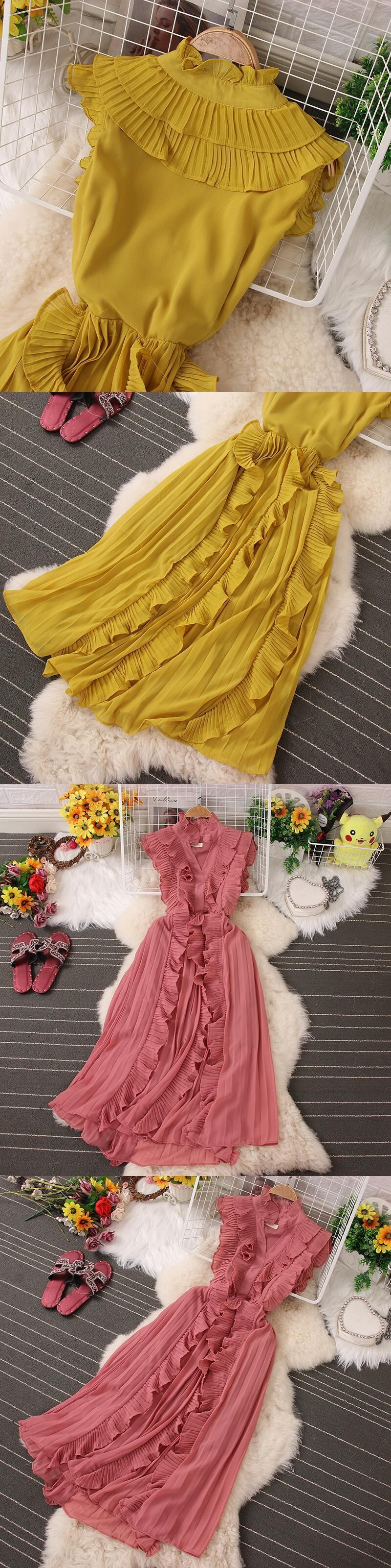ノースリーブVネックワンピースフリルパッチワークウーマンワンピースウエストAラインVestido ドレス kor4585131117