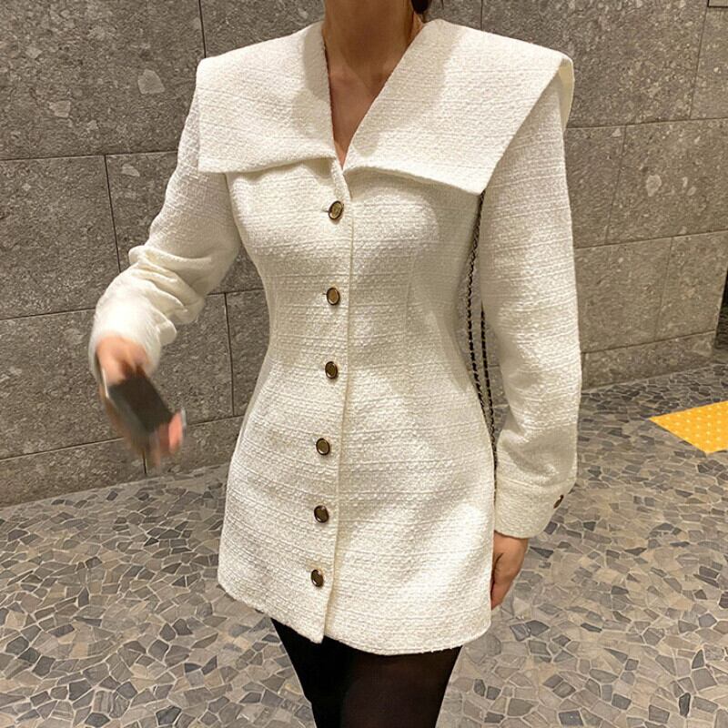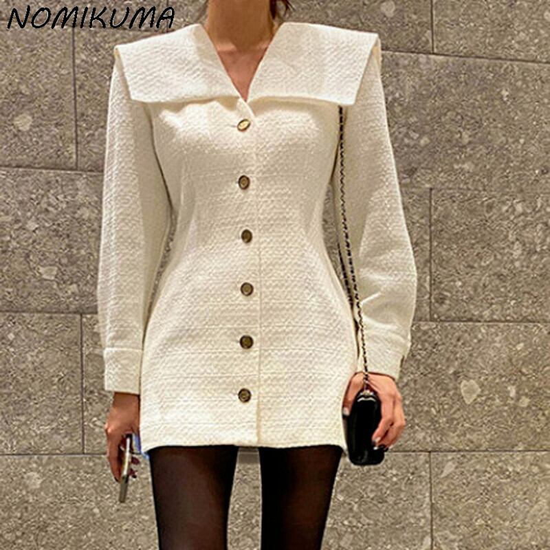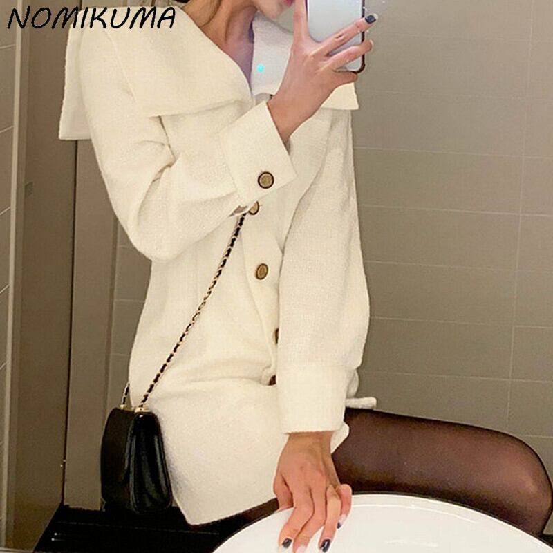 Nomikumaシングルブレストターンダウンカラードレススリム長袖春のドレス ロング スプリング 春物 kor82737218381