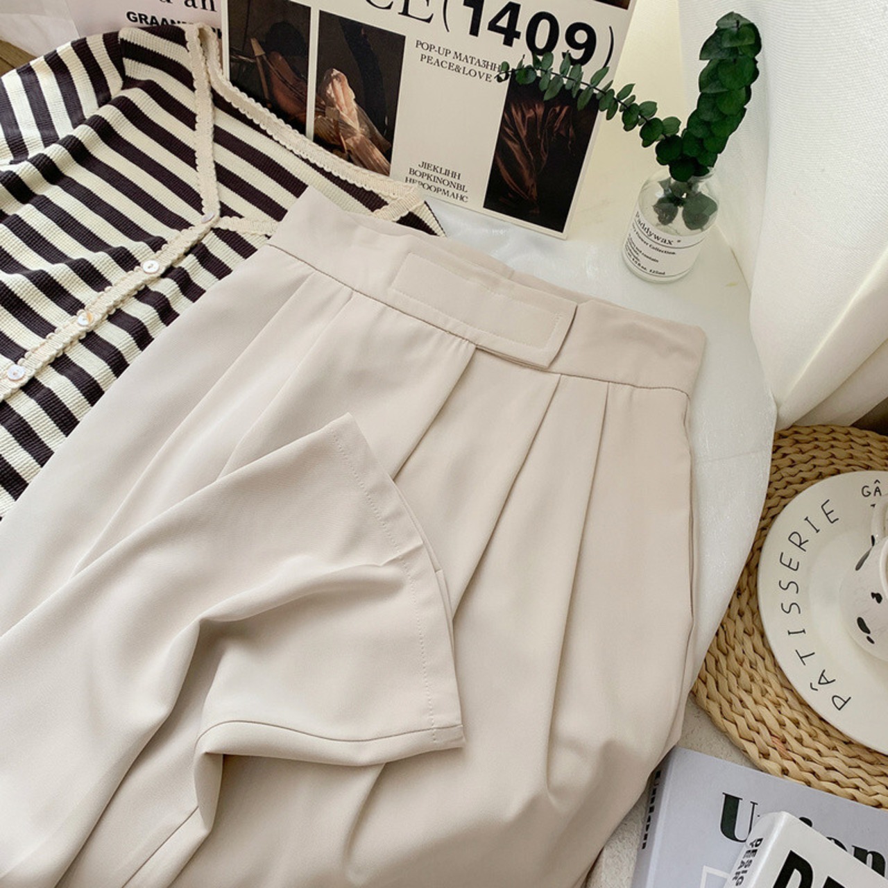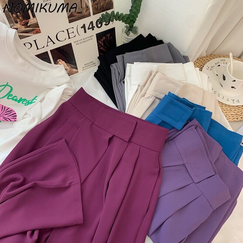 のみくまウエストウーマンスーツパンツ2022サマーロングパンツカジュアルスタイルワイドレッグパンツパンタロンズデ 夏物 ワイドパンツ kor55149927119