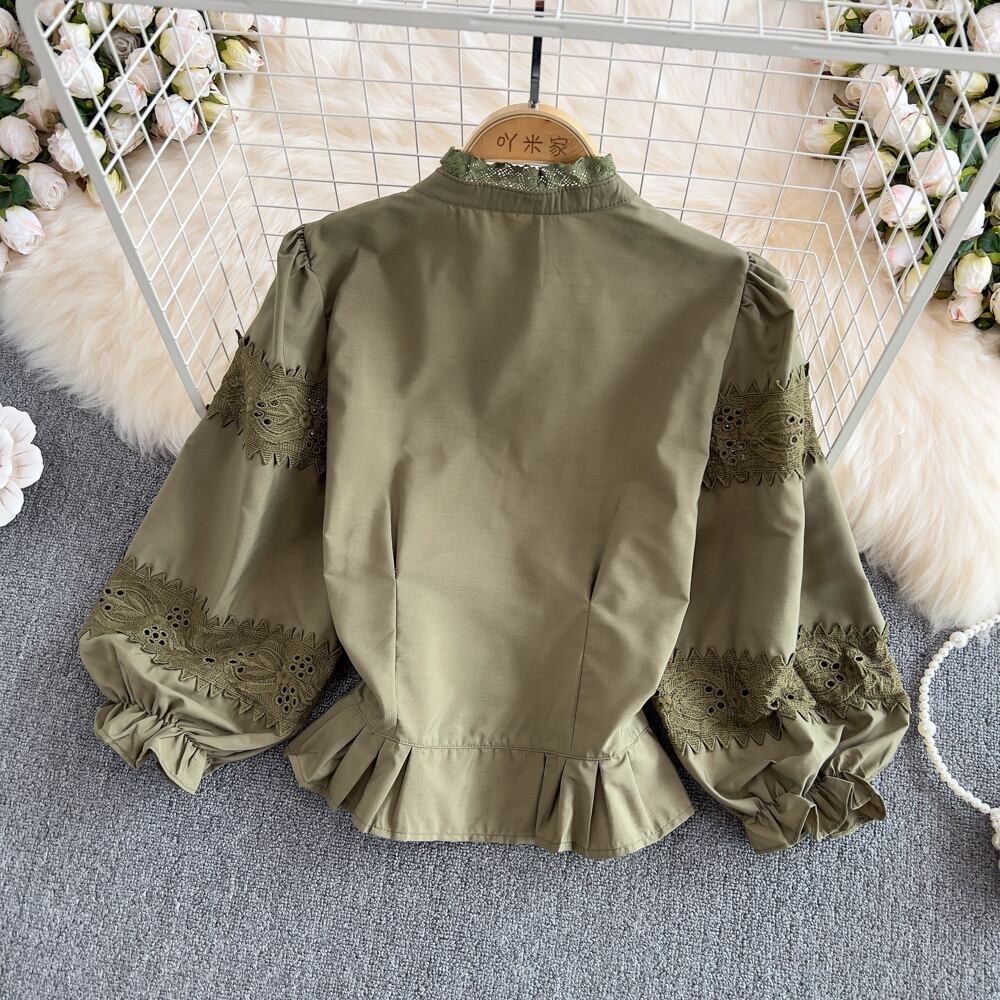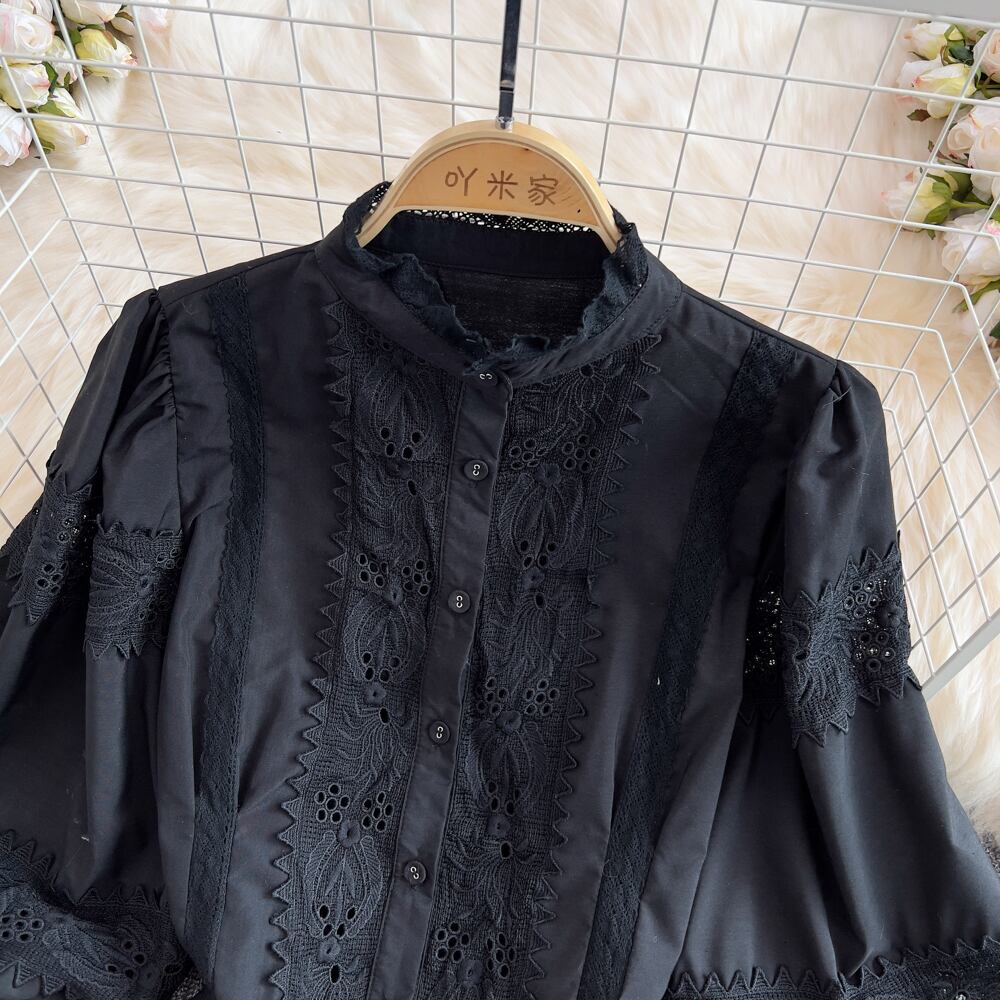 ノミクマヴィンテージスタンドネックシングルブレストブラウスシャツシックなレースパッチワークラテランスリーブレディーストップ2022 ビンテージ kor83413899435