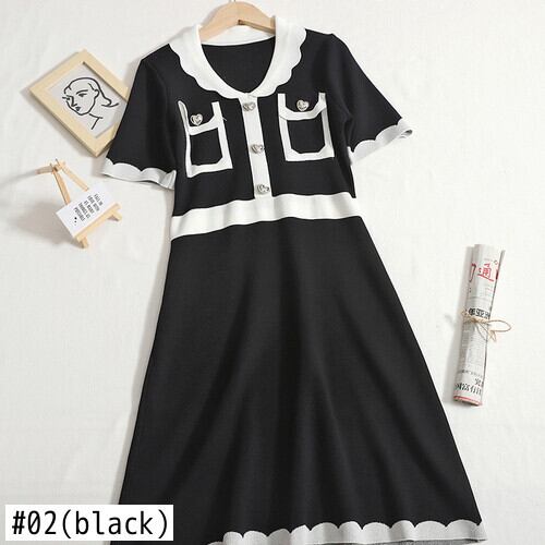 サマーヒットカラーニットドレス女性半袖ピーターパンカラーセーターVestidosウエストドレス ショート ハーフスリーブ 夏物 kor61016206590