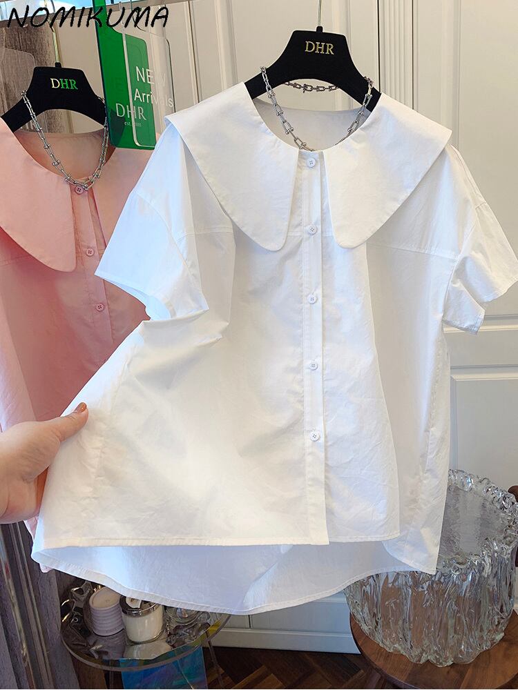のみくまスウィートピーターパンカラードールシャツパフスリーブ2022年夏トップブラウスシックソリッド 大人ガーリー キュート カジュアル サマー 夏物 ソリッドカラー kor72347208975
