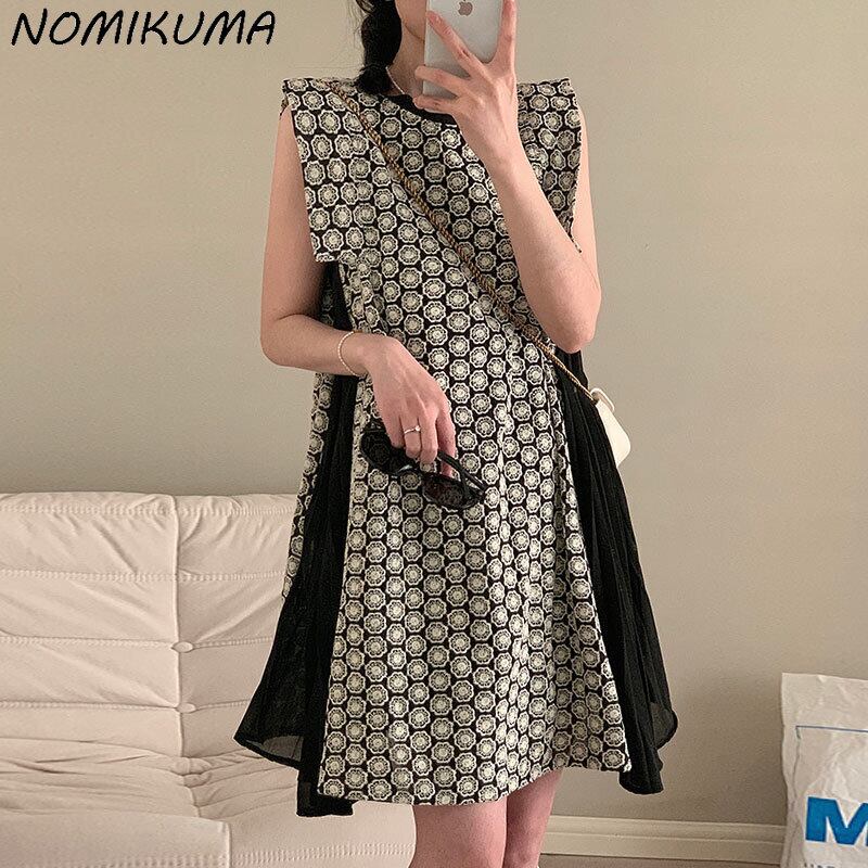 のみくま花刺繡パッチワークメッシュノースリーブタンクドレスレディースシックサマードレス因果AラインVestidos 刺繍 夏物 花柄 kor14640068988