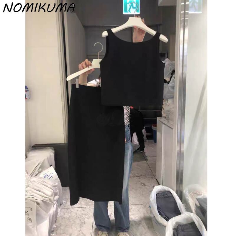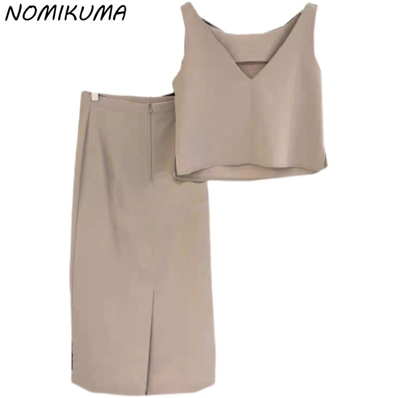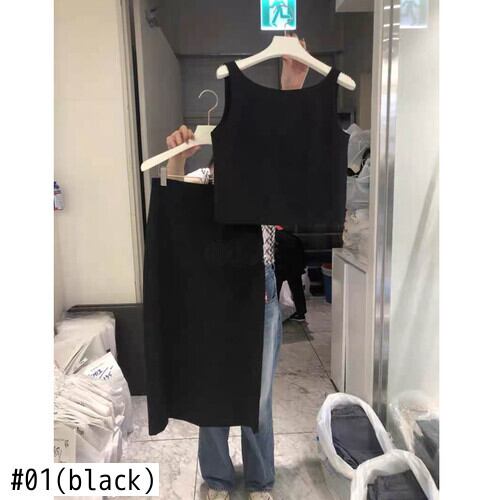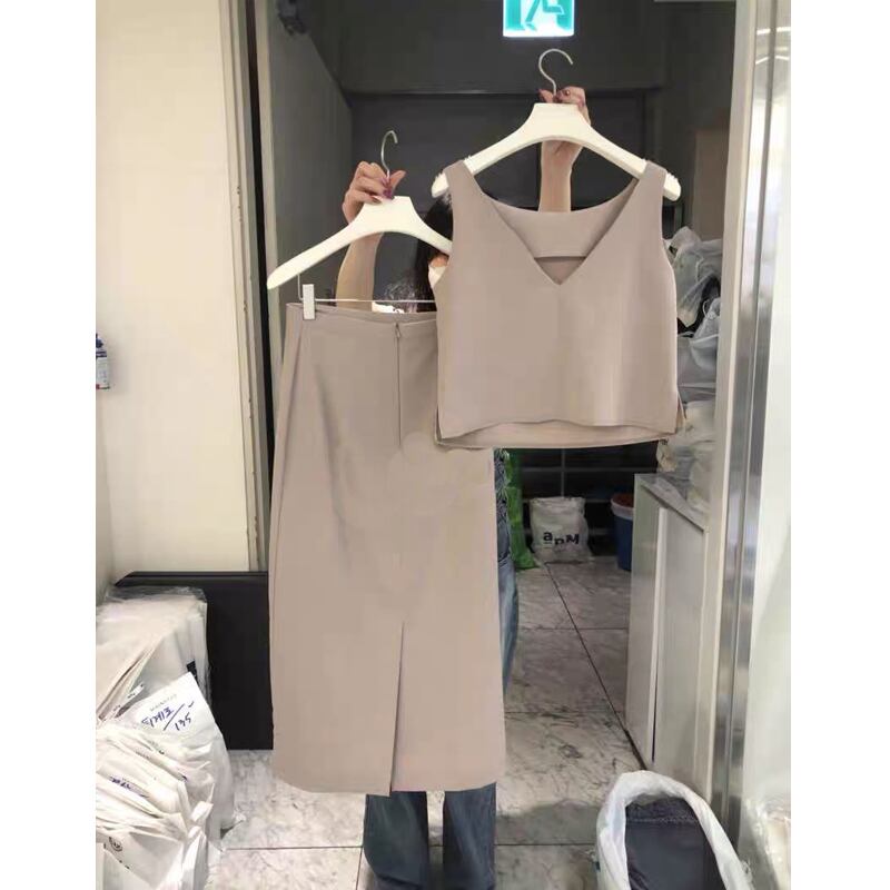 ノミクマ2022夏の女性2点セットVネックノースリーブクロップキャミソールトップス+ウエストスプリットスカート衣装 サマー 夏物 kor2807865677