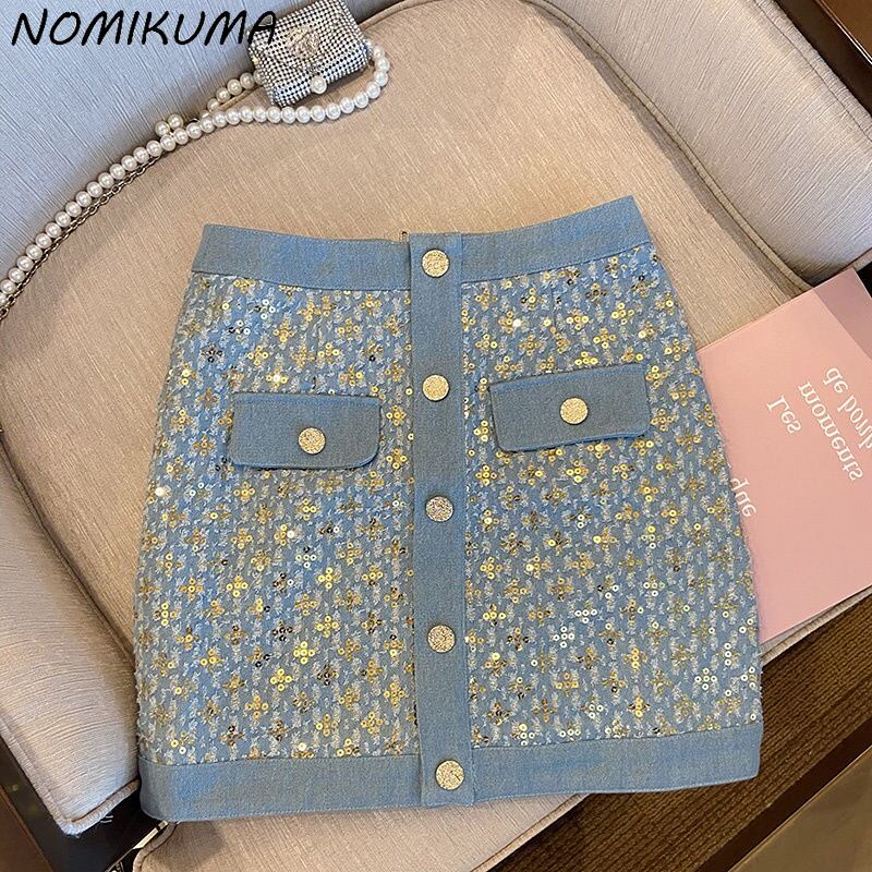 のみくまスパンコールレディースセット半袖Oネックトップ+ウエストAラインミニスカート2022夏2枚 ショート ハーフスリーブ サマー 夏物 kor91470310109
