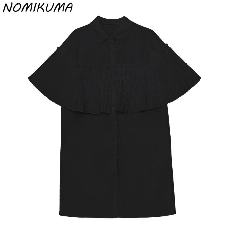 ノミクマスタイルの女性のブラウスドレス因果折り目フリルパッチワークドレス2022夏半袖シングルブレストVestidos ショート ハーフスリーブ サマー 夏物 kor79434501856