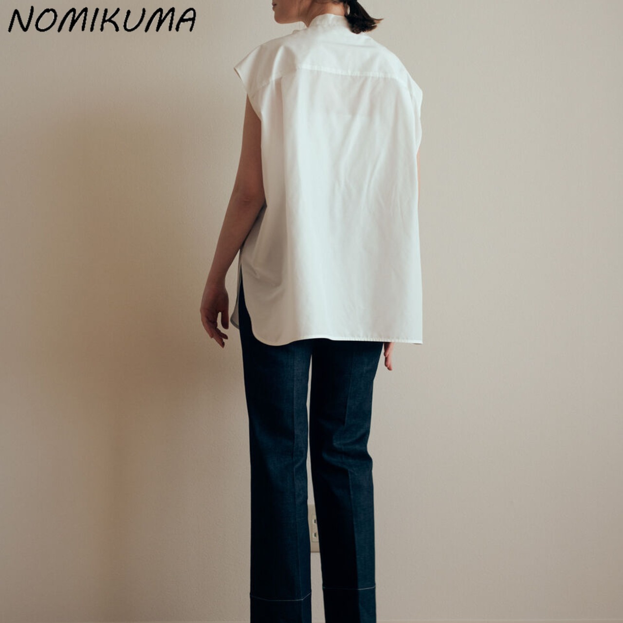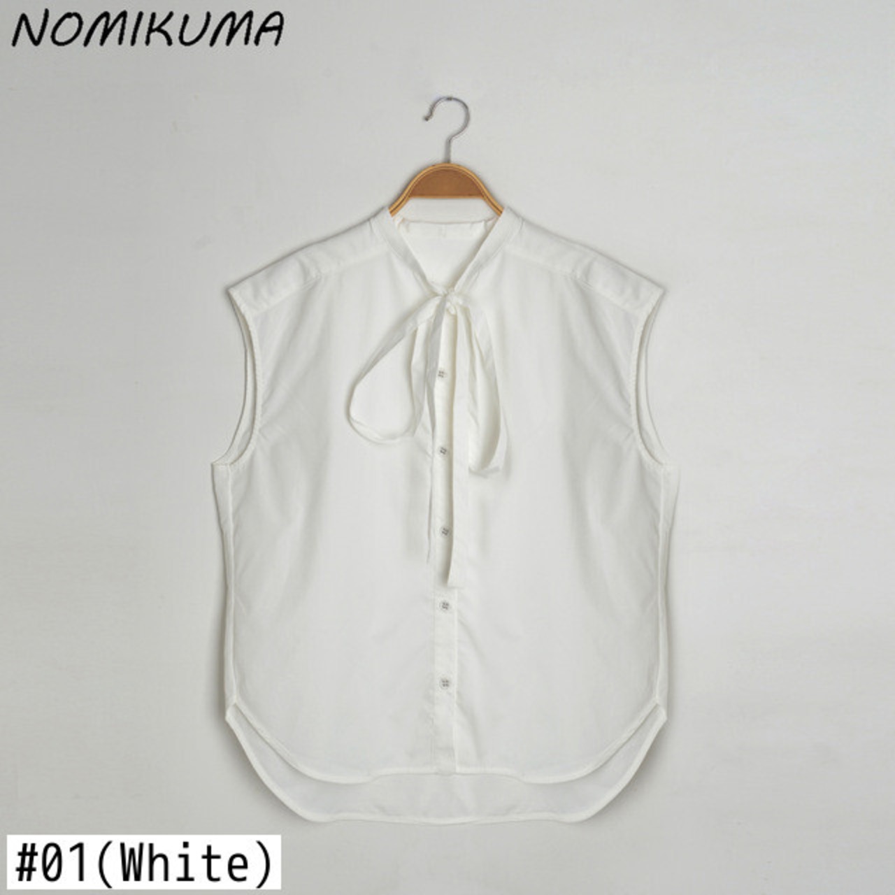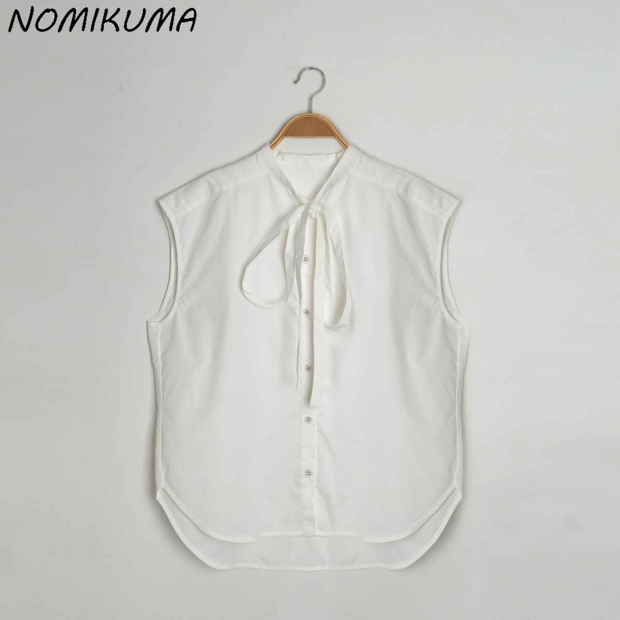 ノミクマシックスウィートウーマンブラウスCausal2022サマースタイルトップシャツCausalBowTieStadnNeckノースリーブ リボン 大人ガーリー キュート カジュアル 夏物 kor18622531904