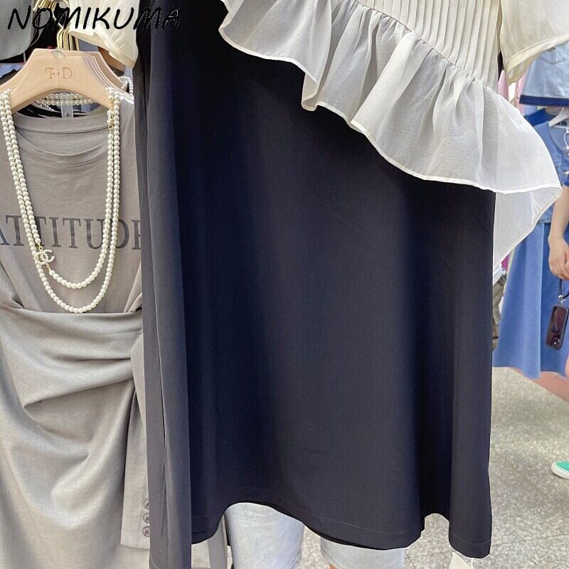 NomikumaHirカラーフリルビーズフラワードレス2022SummerCausalPuffスリーブドレスChicSweetVestido De 大人ガーリー スウィート キュート カジュアル サマー 夏物 フラワーデザイン kor22386528679