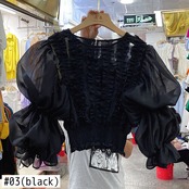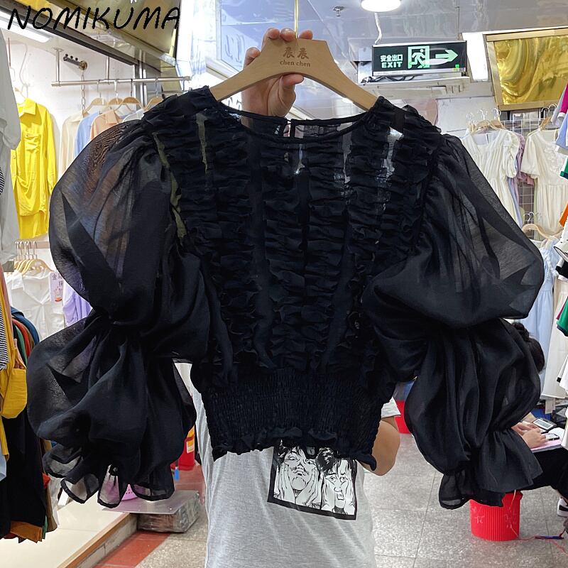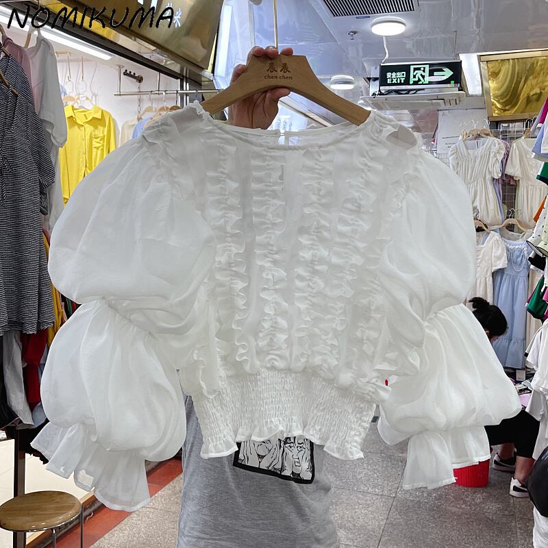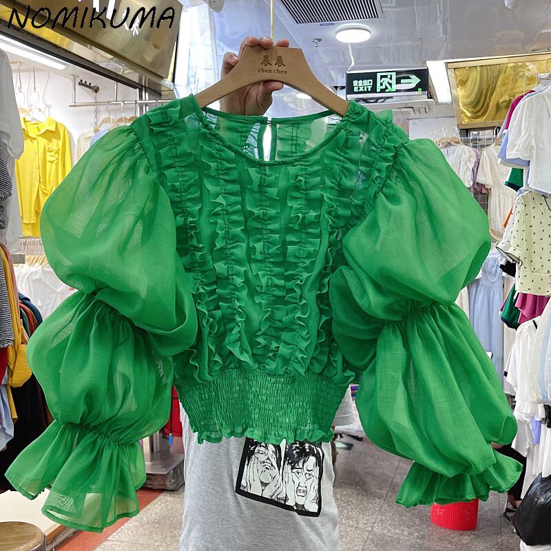 ノミクマシックブラウス2022サマースウィートエディブルツリーカビシフォントップスランタンスリーブOネックショート 大人ガーリー キュート カジュアル 夏物 kor35182681848