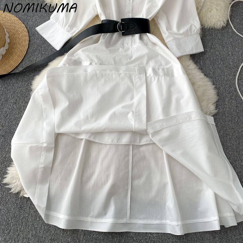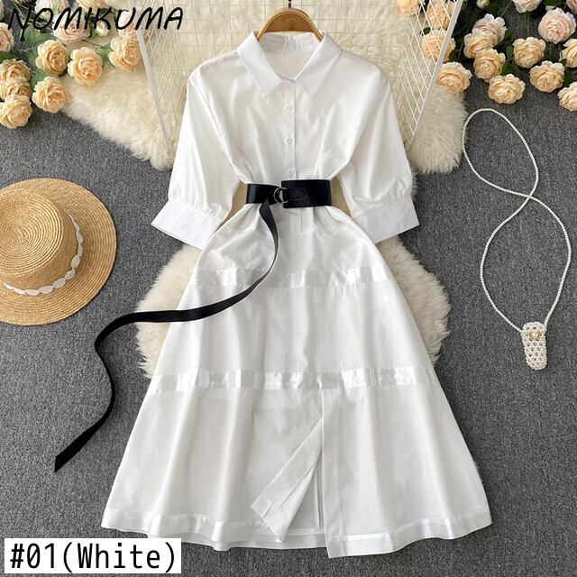 のみくまベルトスリムウエストブラウスワンピースレディース半袖シングルブレストターンダウンカラーワンピース2022サマーヴェスティドス ショート ハーフスリーブ 夏物 ドレス ハーネス kor43953111902
