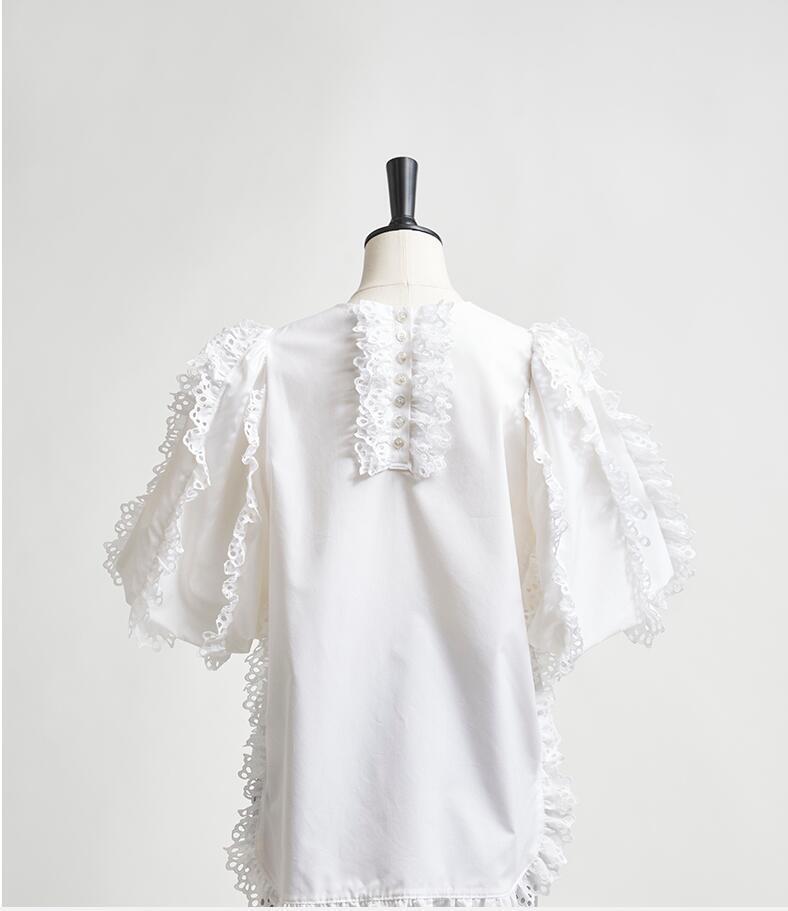 ノミクマレディースブラウス2022サマースタイルデシックレースパッチワークパフスリーブOネックスウィートドールシャツ 大人ガーリー キュート カジュアル 夏物 kor35594149290