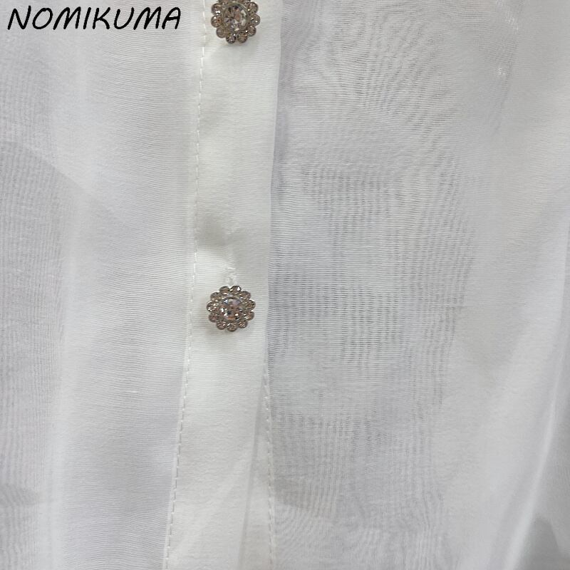 ノミクマシック3Dフラワービーズピーターパンカラーシフォンブラウスレディース2022サマーレディーストップスコーザルパフスリーブ 夏物 フラワーデザイン kor46543300076