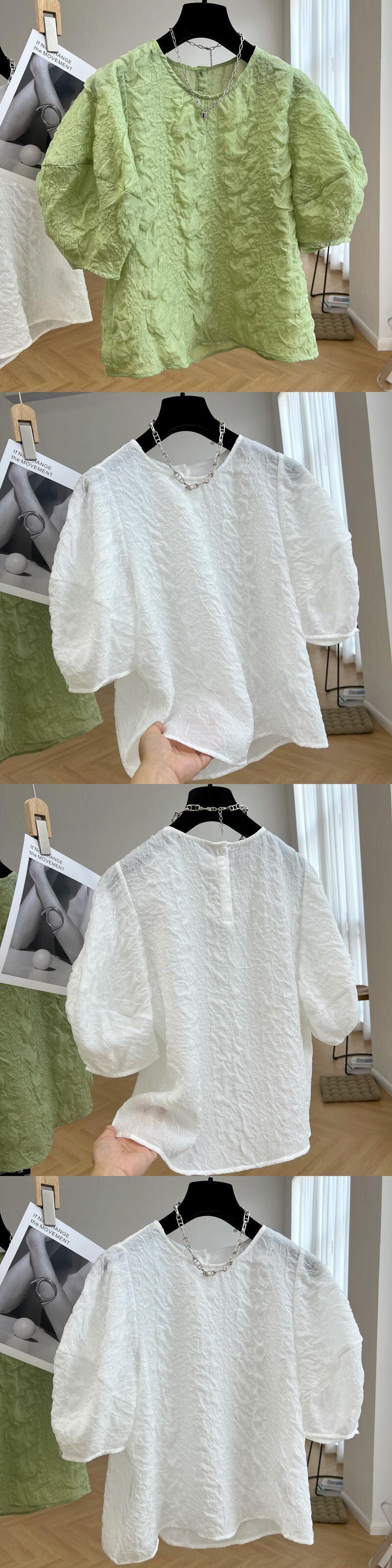 ノミクマレディーストップスブラウス2022サマーシックスウィートパフスリーブOネックドールシャツCausalStyleDe 大人ガーリー キュート カジュアル 夏物 kor31481286140