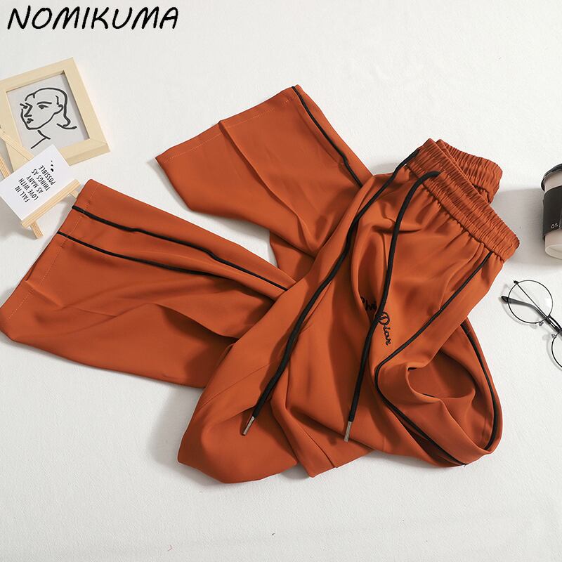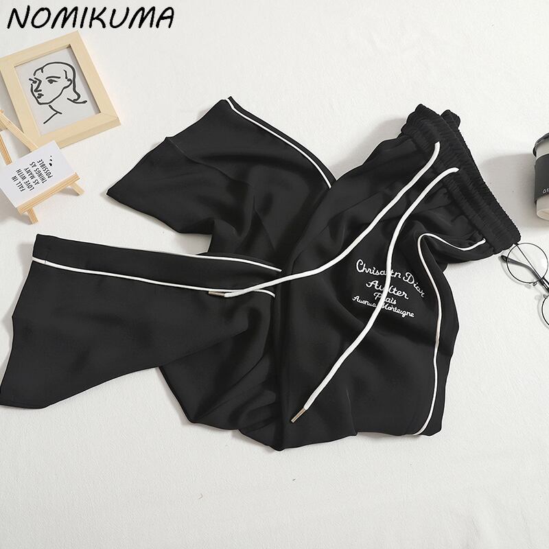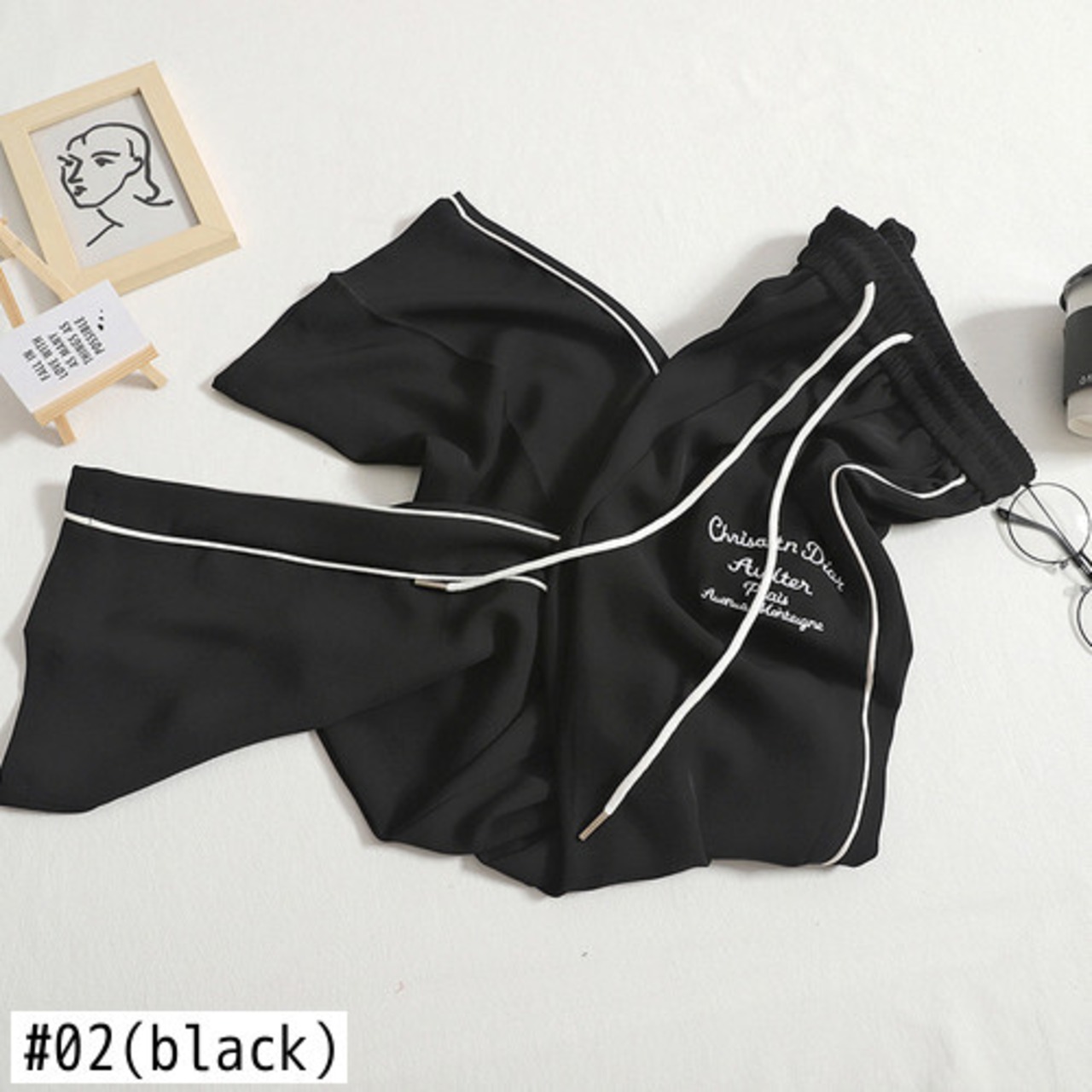 のみくまウエストドローストリングスーツパンツ女性2022夏ロングパンツ因果文字スタイルワイドレッグパンツ サマー 夏物 ワイドパンツ kor94351985605