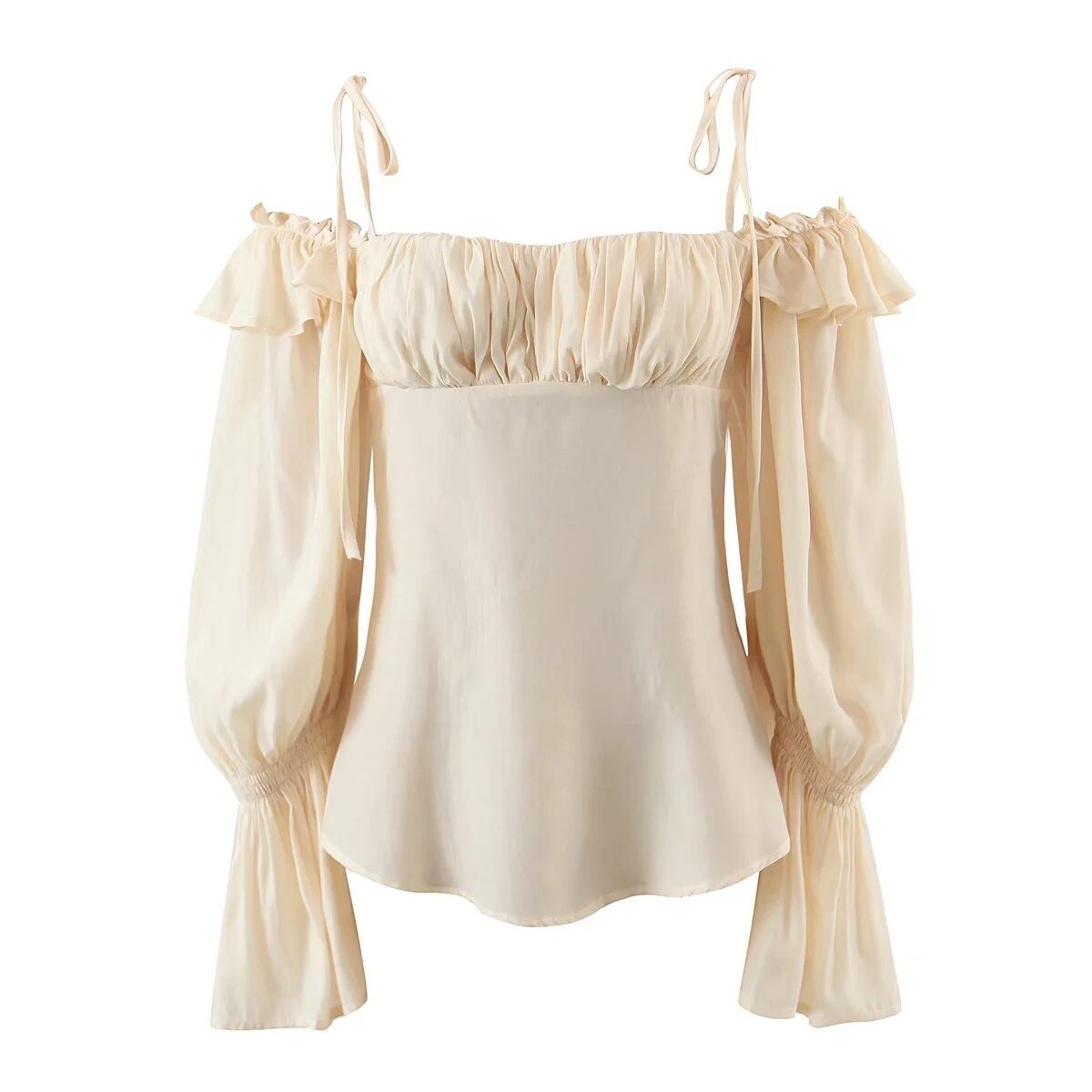 ノミクマオフショルダースリングシャツレディース2022サマーランタンスリーブブラウススウィートフリルフェミニマ 大人ガーリー キュート カジュアル 夏物 kor54713224683