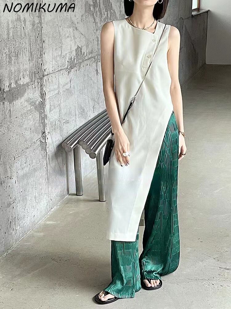 Nomikuma Causal SplitWomanDressノースリーブOネックサマーソリッドドレス 夏物 ソリッドカラー kor1508731698