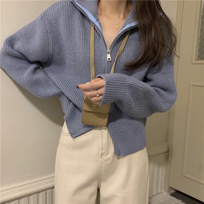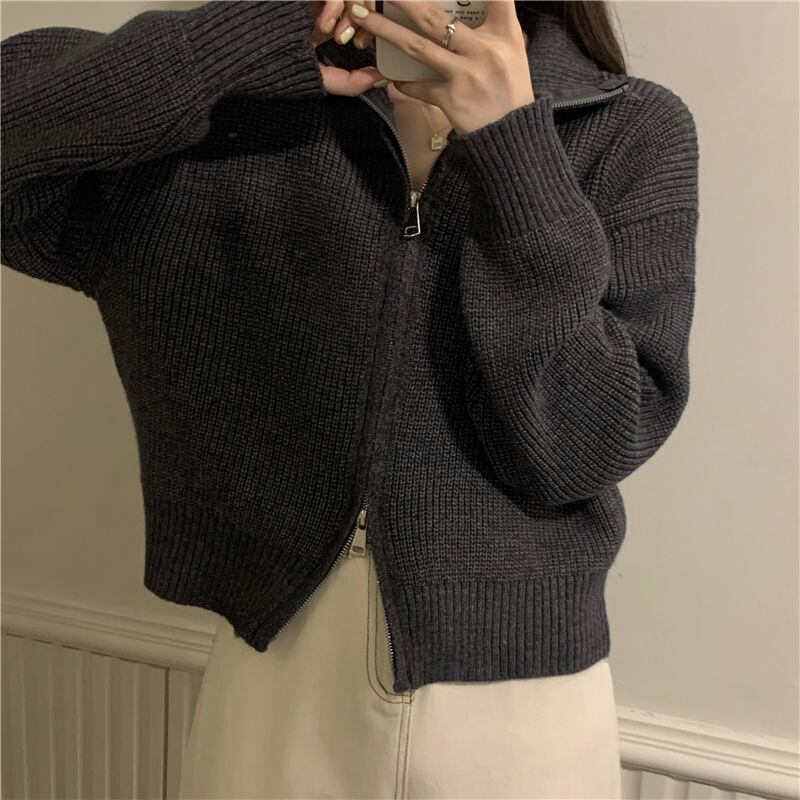 のみくまスタイルジッパースタンドネック野球スウェットセーターコートカジュアル長袖2022秋ニットカーディガン女性 ロング オータム 秋物 kor99280683370