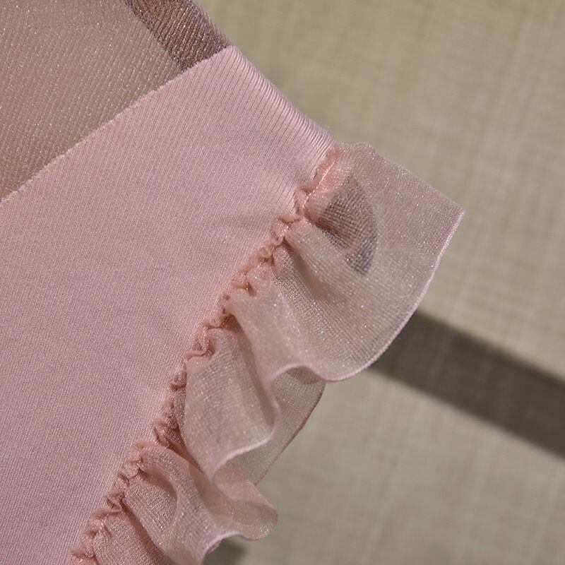 のみくま2022シックなフリルガーゼパッチワークニットベストノースリーブハーフタートルネックプルオーバーウーマンタンクトップス kor48649147474