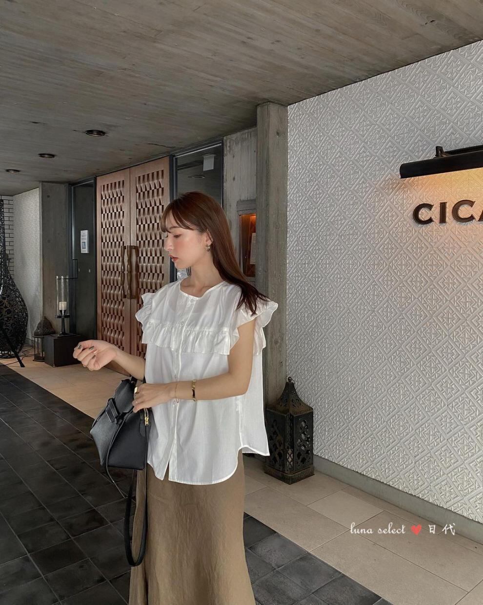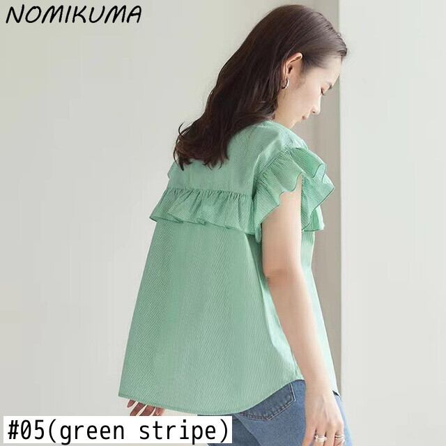 ノミクマ2022ホットスタイルレディースシャツシックなストライプフリルブラウストップススウィートフライングスリーブ 大人ガーリー キュート カジュアル kor43900081922